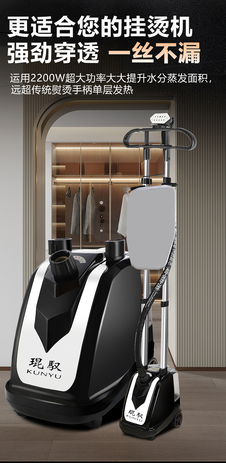 쿤유 의류 스팀 다리미, 고출력 스팀 전기 다리미, 가정용 휴대용 다리미, 의류점용 강력 스팀