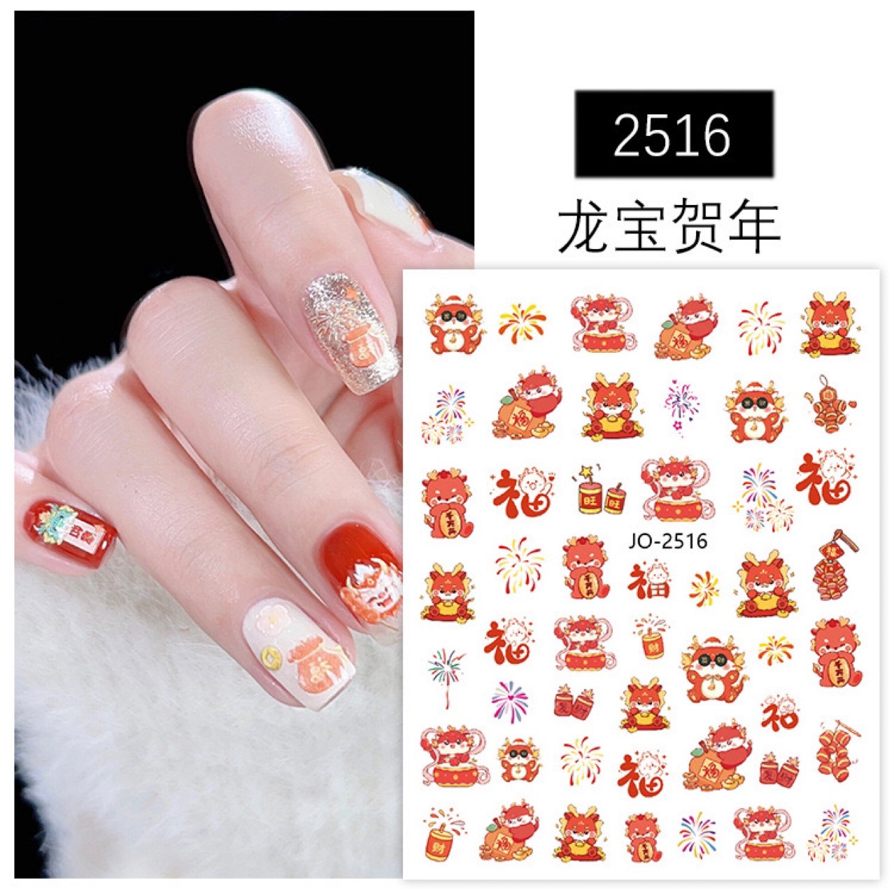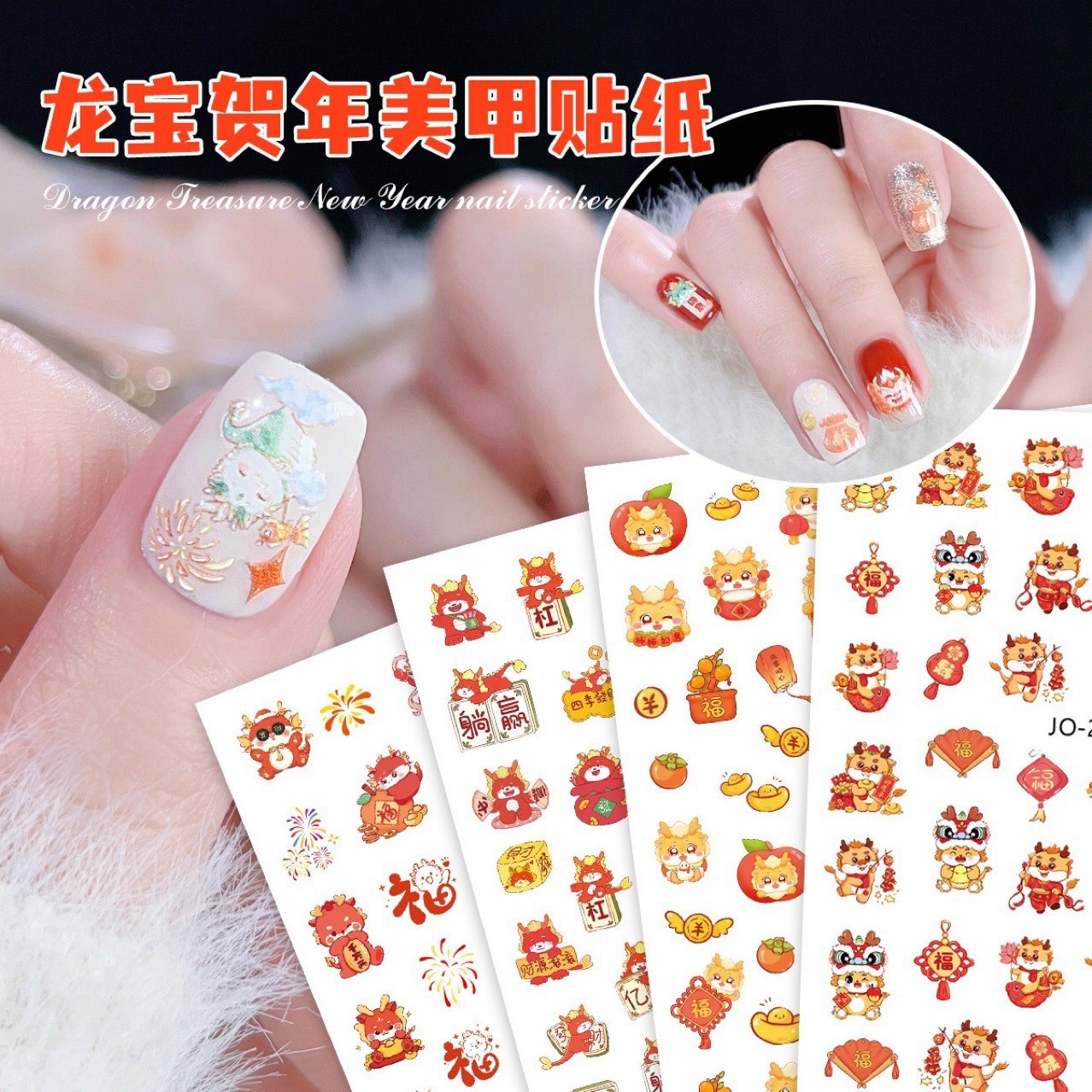 네일 아트 스티커 귀여운 만화 행운 축제 우유 용 Meng Meng 드래곤 네일 장식 착용 네일 백 접착 스티커 도매스토어 가기