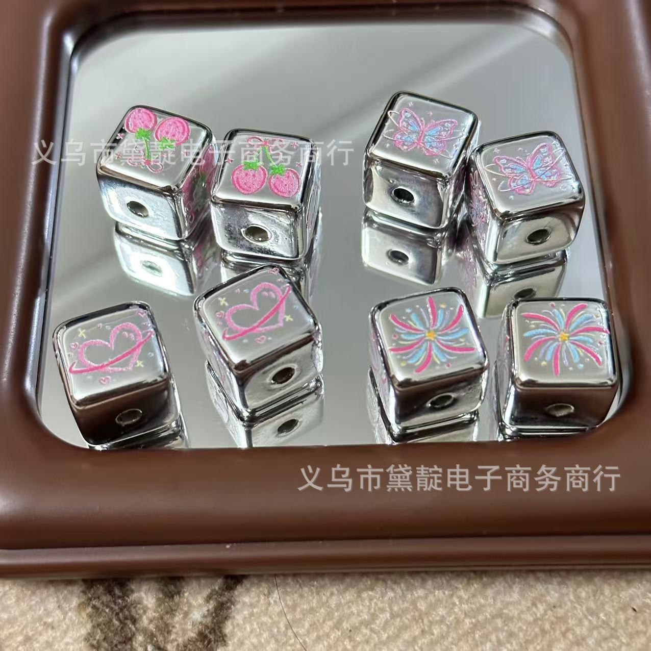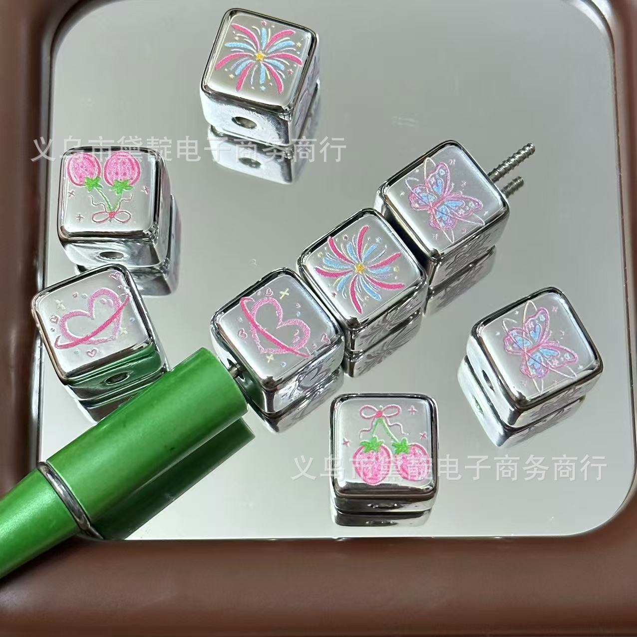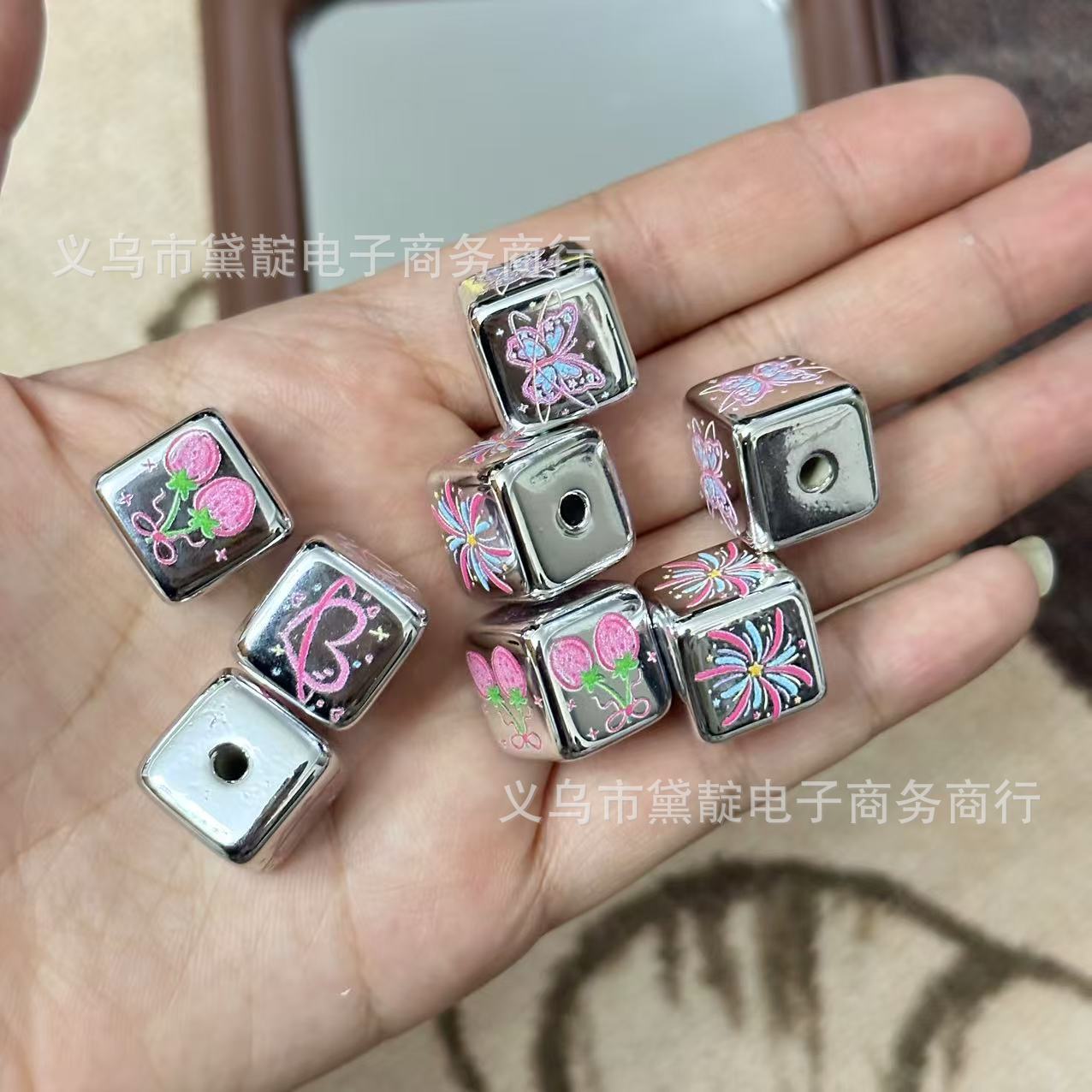 만화 인쇄 4 면 광장 Y2K 실버 부서 낙서 광장 DIY 수제 휴대 전화 로프 팔찌 목걸이 보석