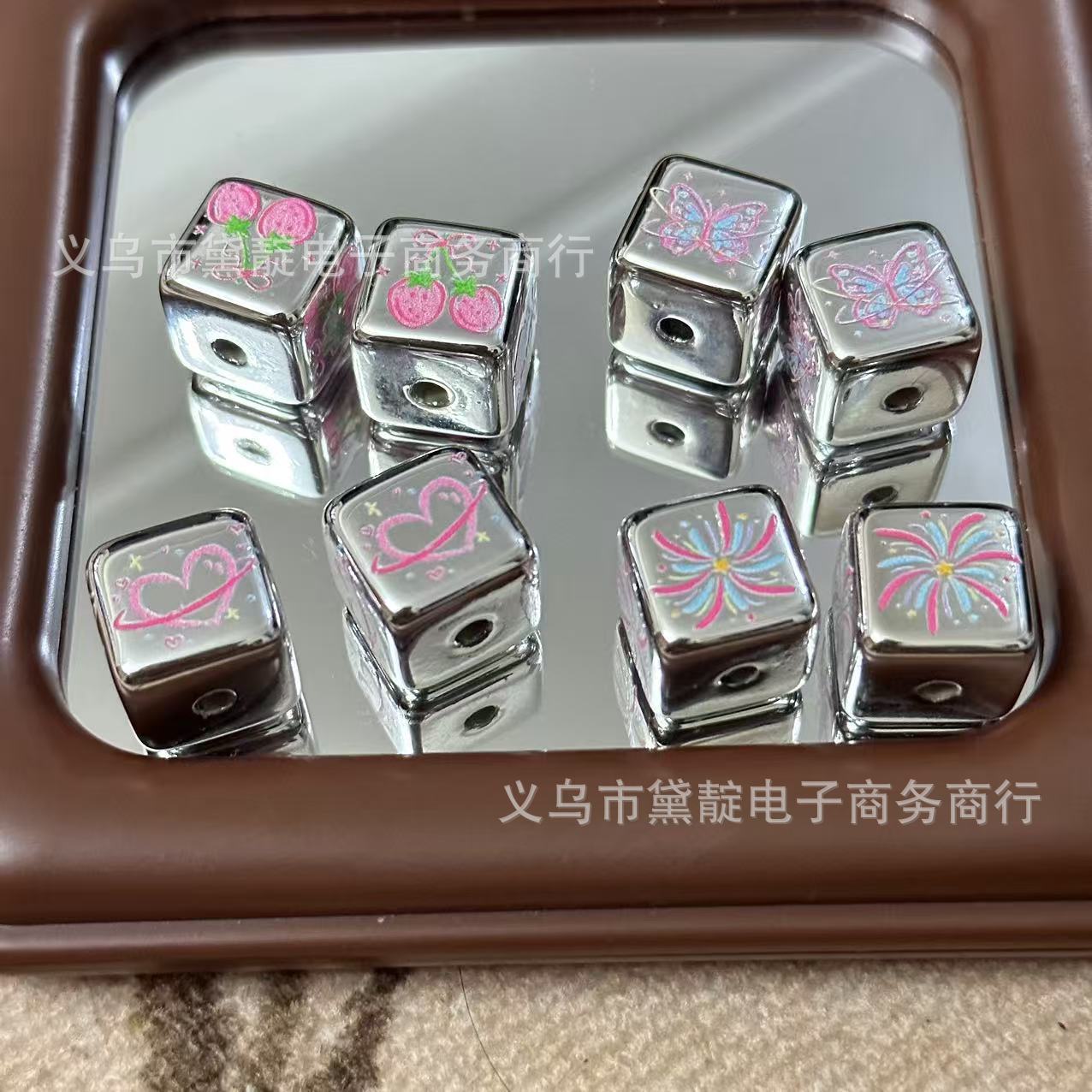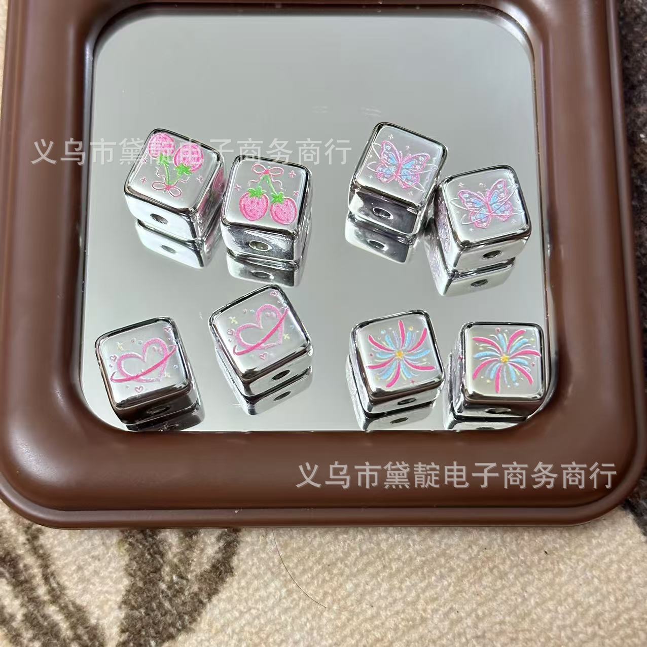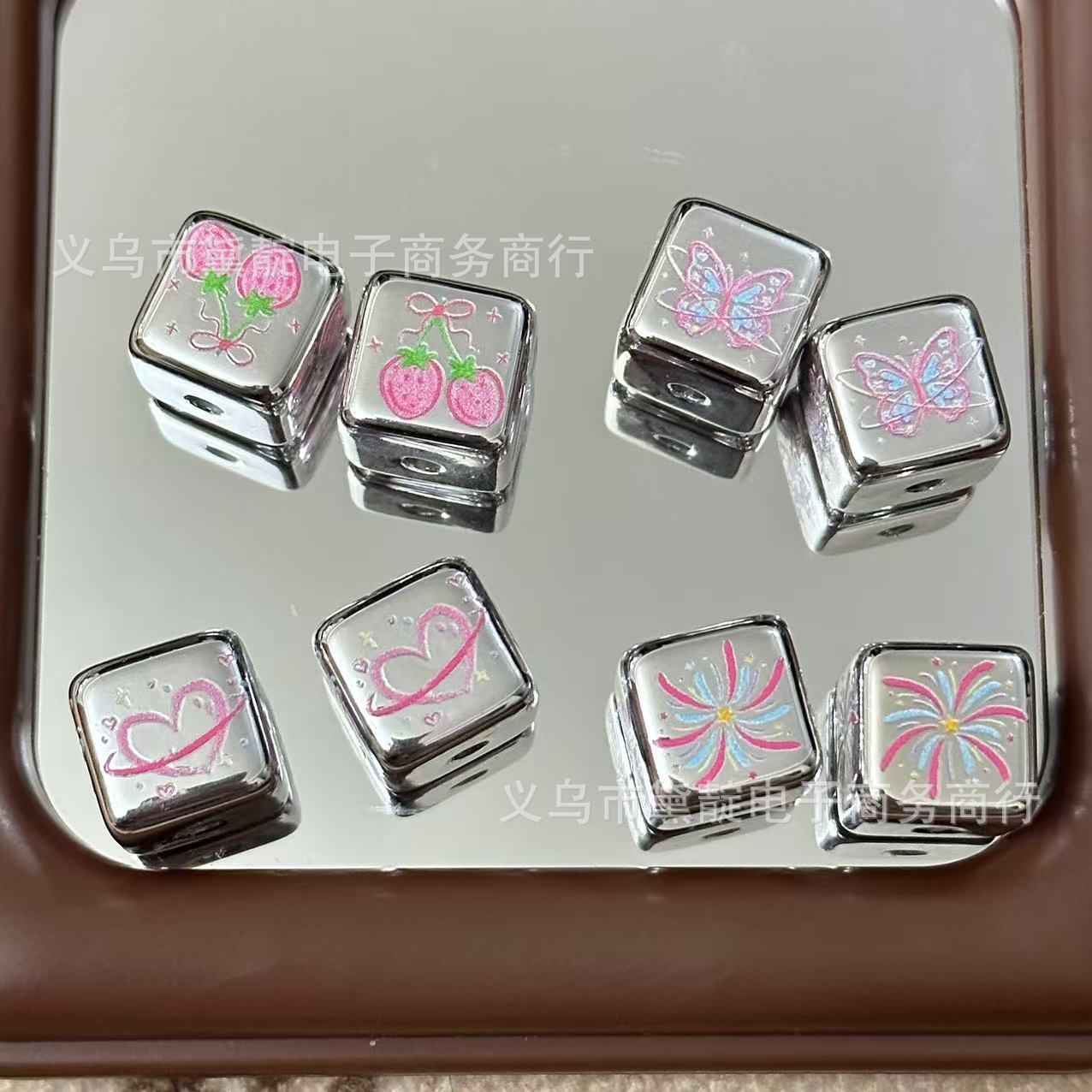 만화 인쇄 4 면 광장 Y2K 실버 부서 낙서 광장 DIY 수제 휴대 전화 로프 팔찌 목걸이 보석