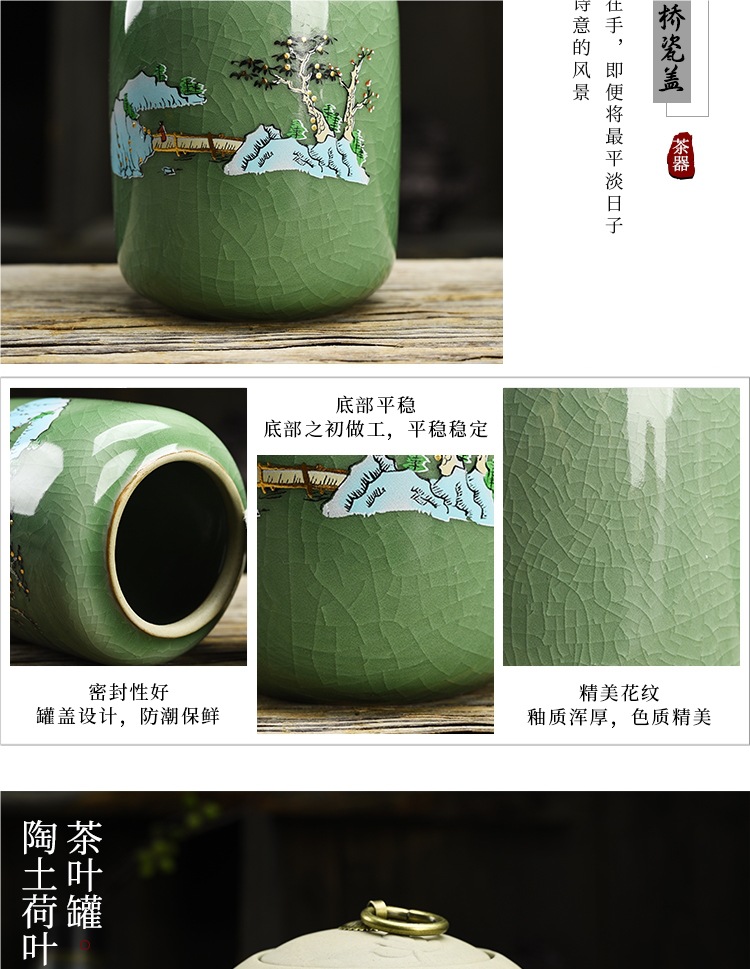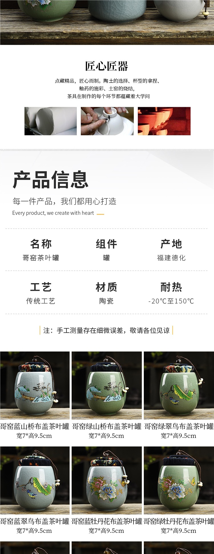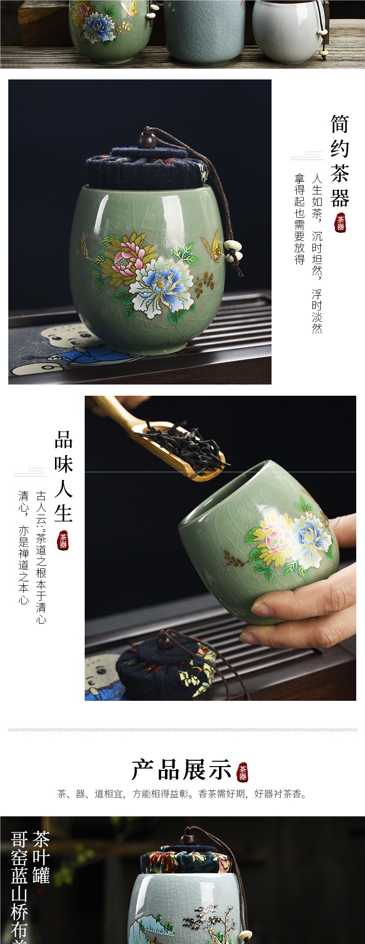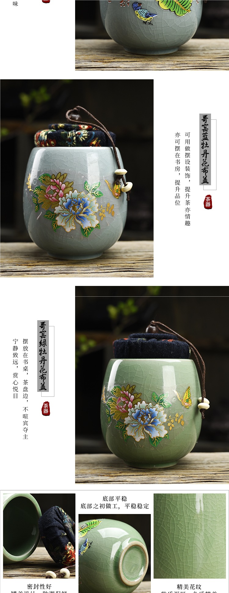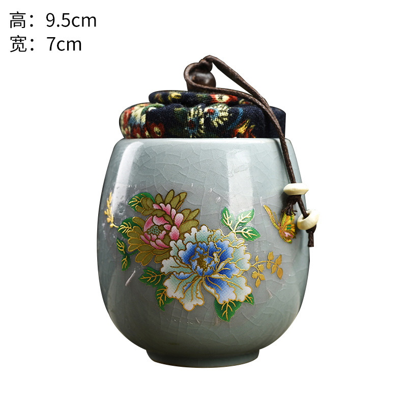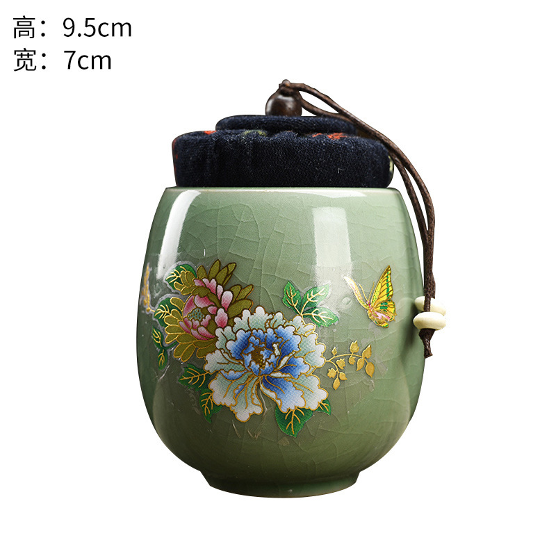 • 6-Ge Kiln 녹색 모란 꽃 천 뚜껑 차 캔