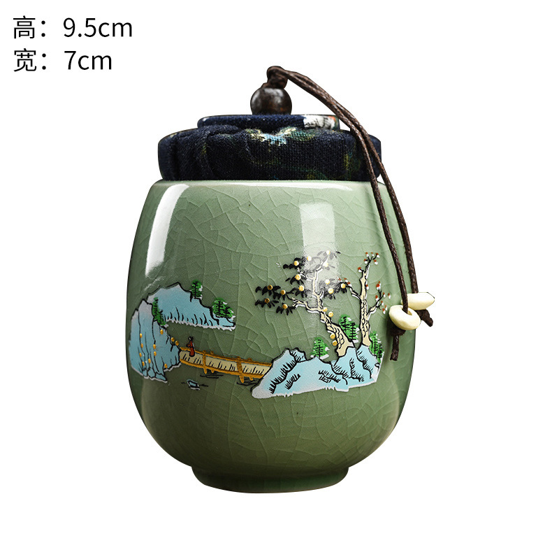 • 2-Ge Kiln Green Mountain Bridge 천 뚜껑 차 캔