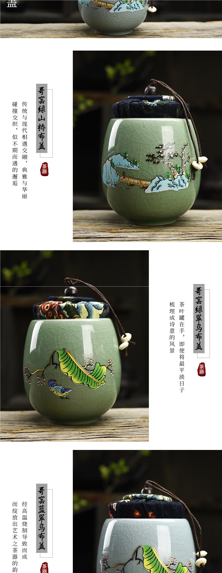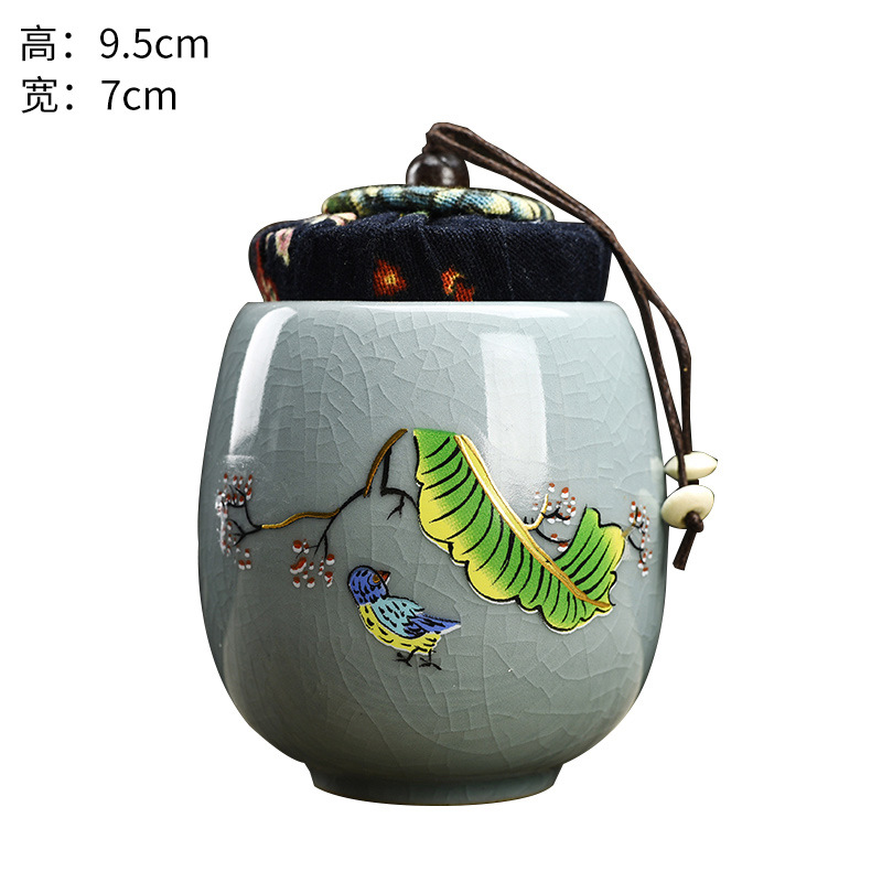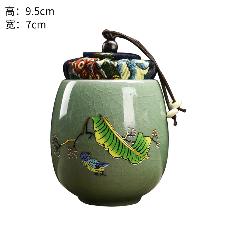 • 3-Ge Kiln Green Cui Bird 천 뚜껑 차 캔