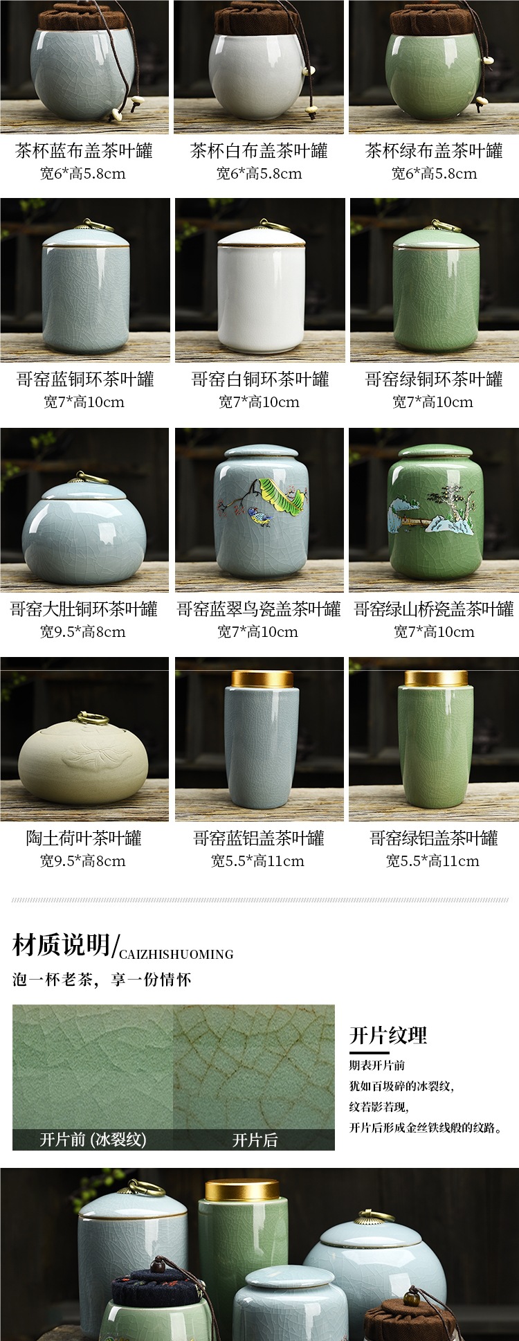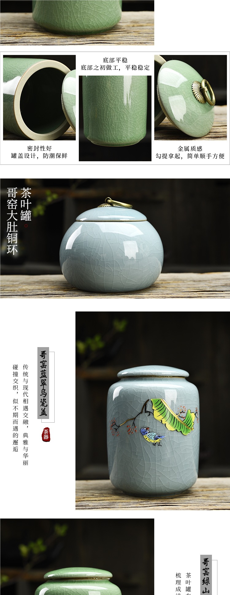 • 4-Ge Kiln Blue Cui Bird 천 뚜껑 차 캔