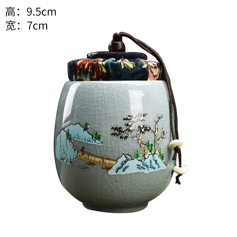 • 1-Ge Kiln Blue Mountain Bridge 천 뚜껑 차 캔