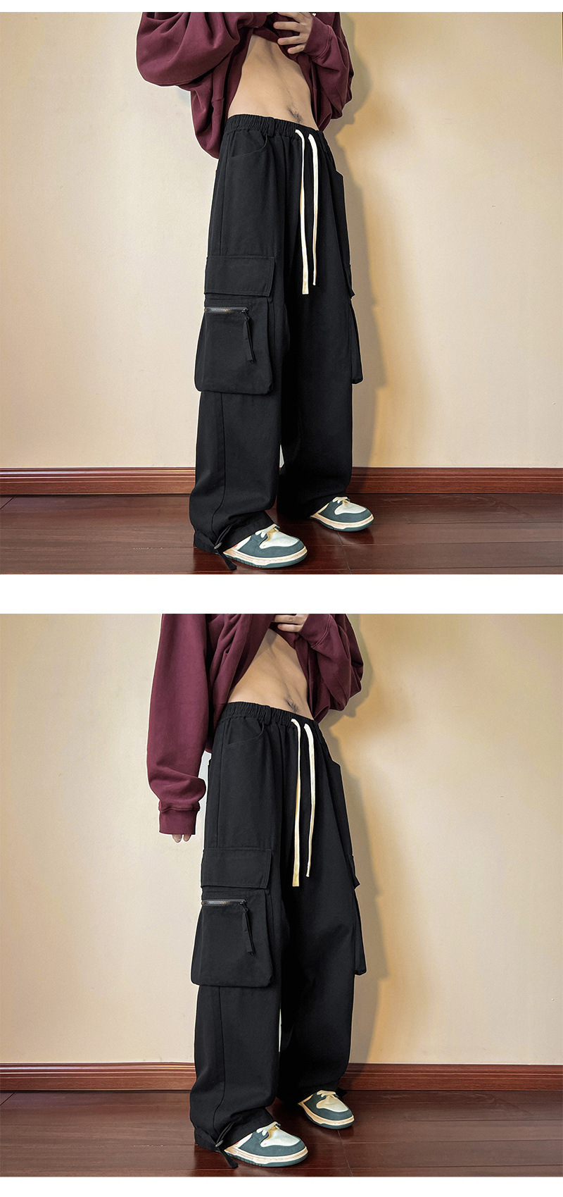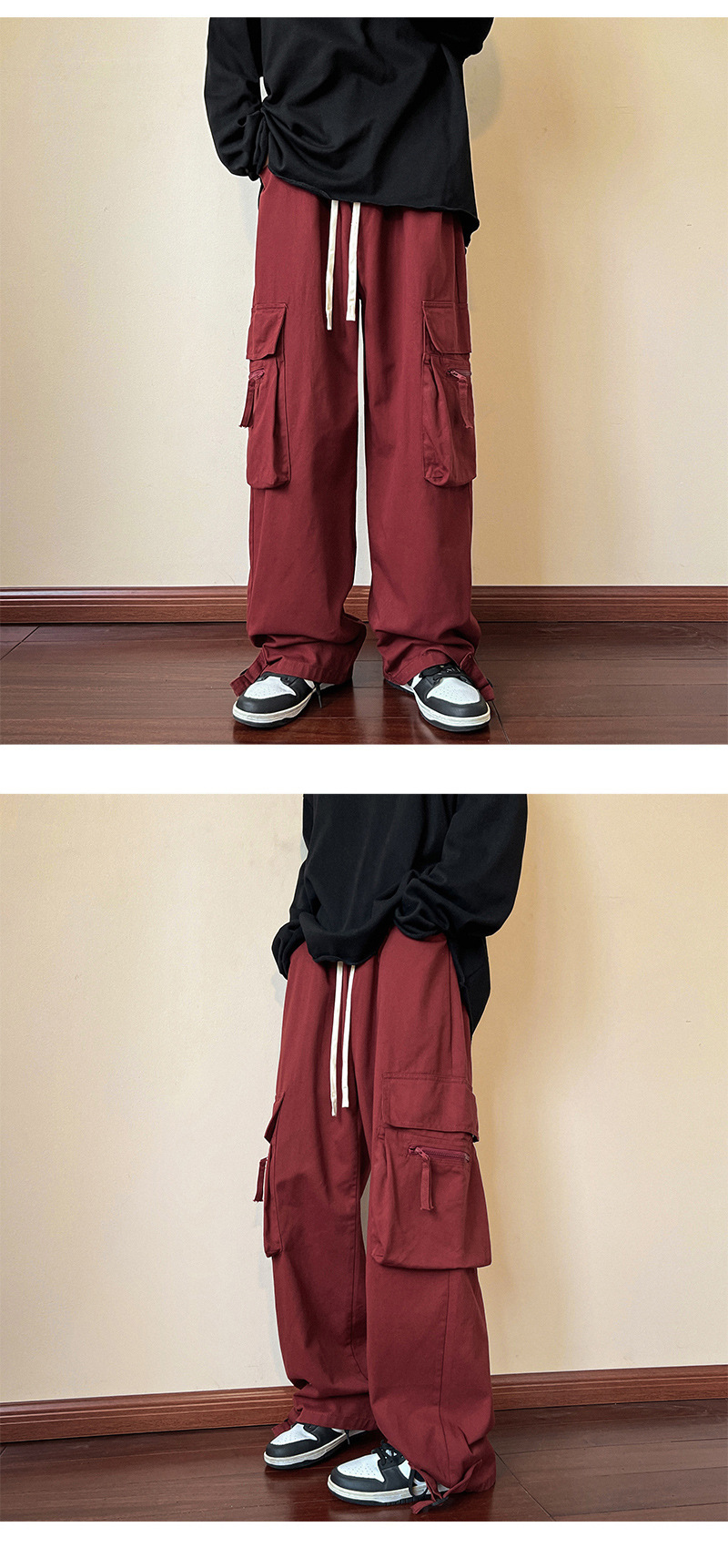 국가 조수 오버 사이즈 팬츠 Ins 하이 스트리트 타이드 기능성 바람 버건디 무선 바지 남성용 스트레이트 무승부 스트리트 댄스 바지스토어 가기