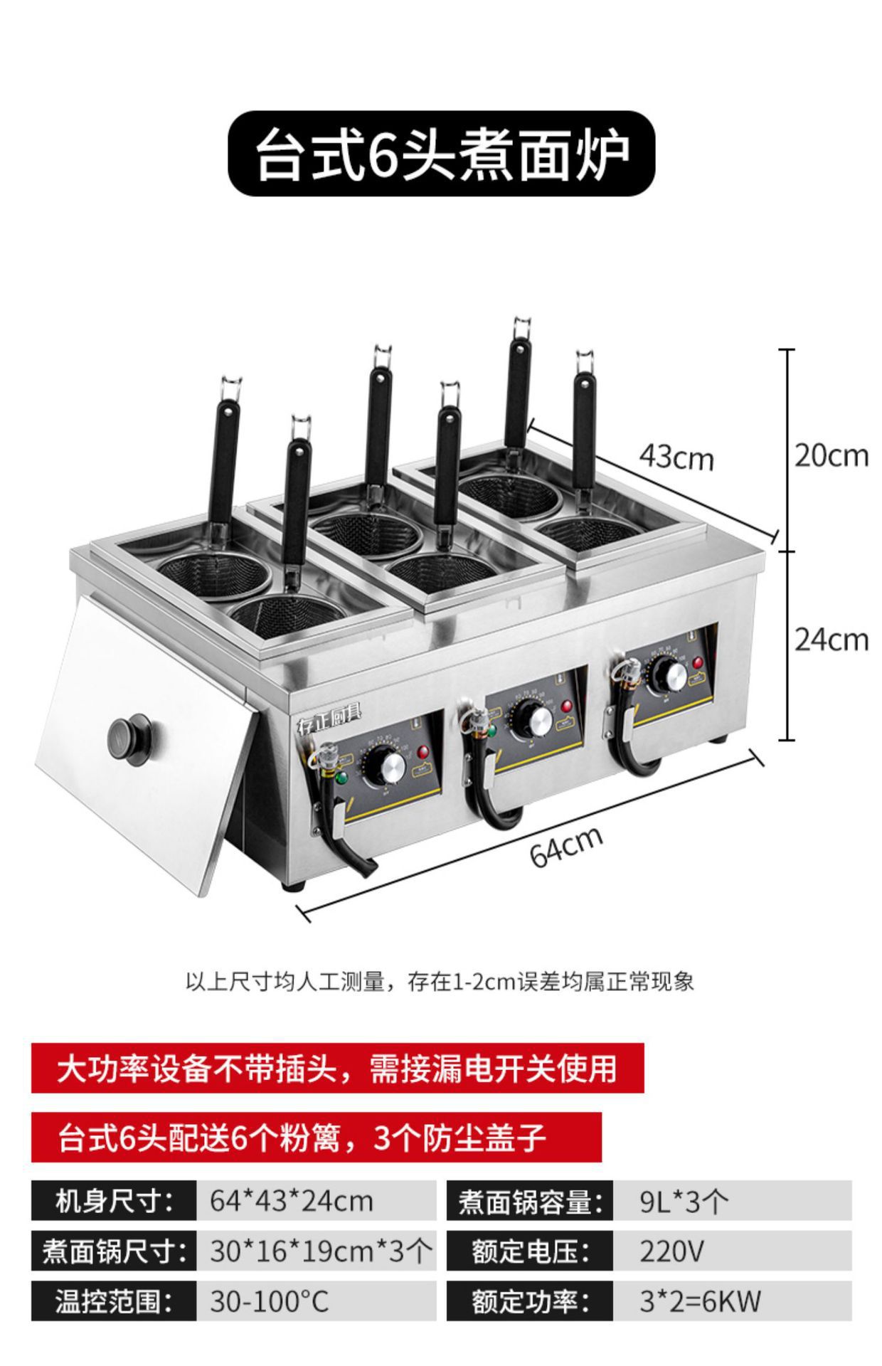 • 경제적인 모델 - 6구 3기통 데스크탑 전기 국수 밥솥(플러그 없음 + 국수 울타리 + 국수 젓가락)