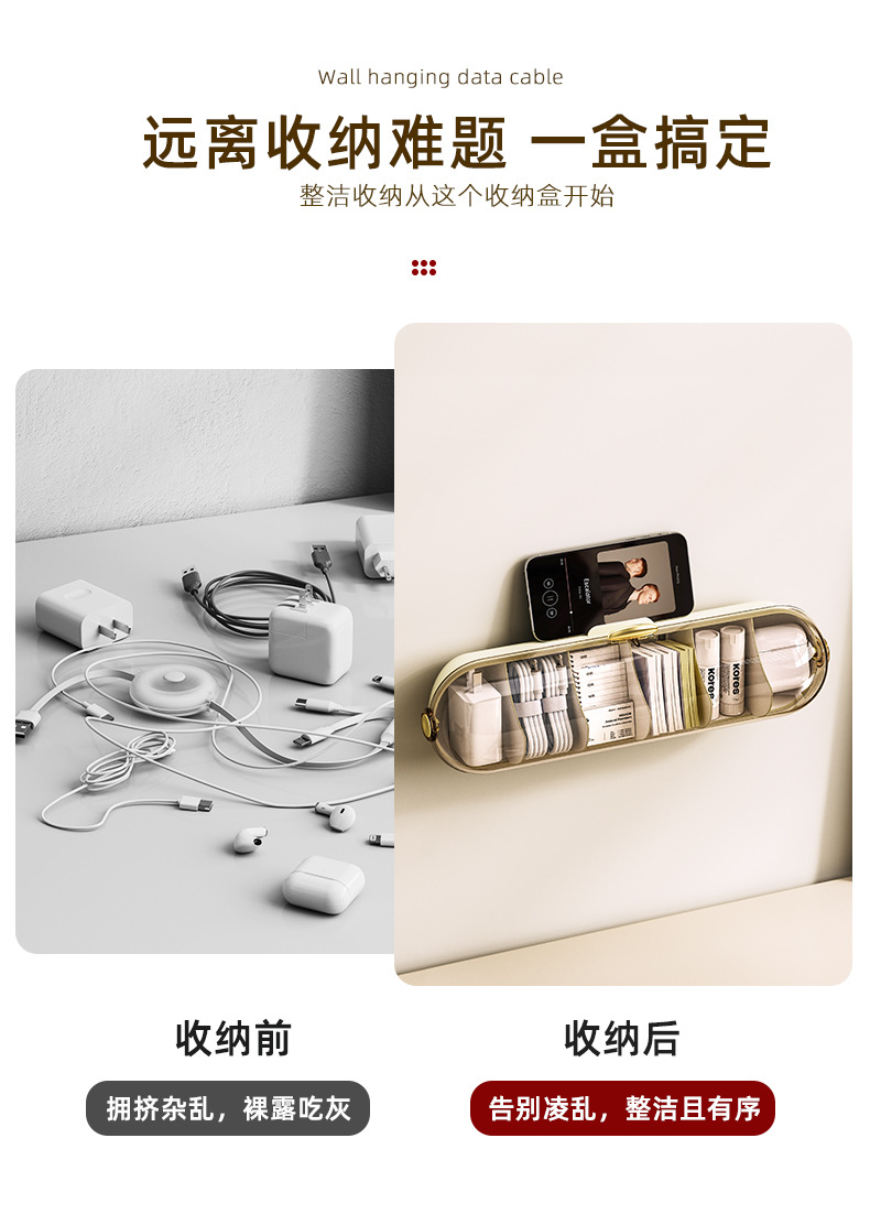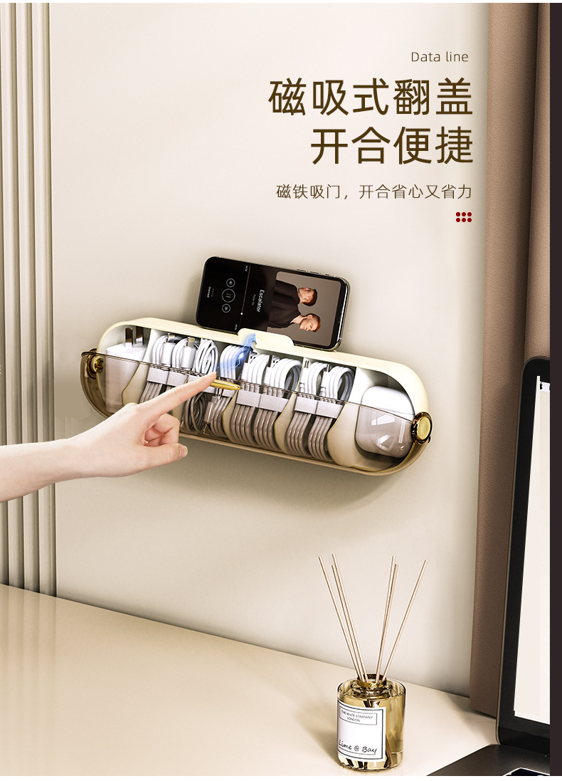 볼란 데이터 케이블 저장 상자 벽에 장착 된 충전 라인 휴대 전화 충전기 데스크탑 마무리 라인 저장 랙 Qin Xuan스토어 가기