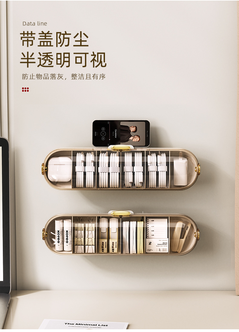 볼란 데이터 케이블 저장 상자 벽에 장착 된 충전 라인 휴대 전화 충전기 데스크탑 마무리 라인 저장 랙 Qin Xuan