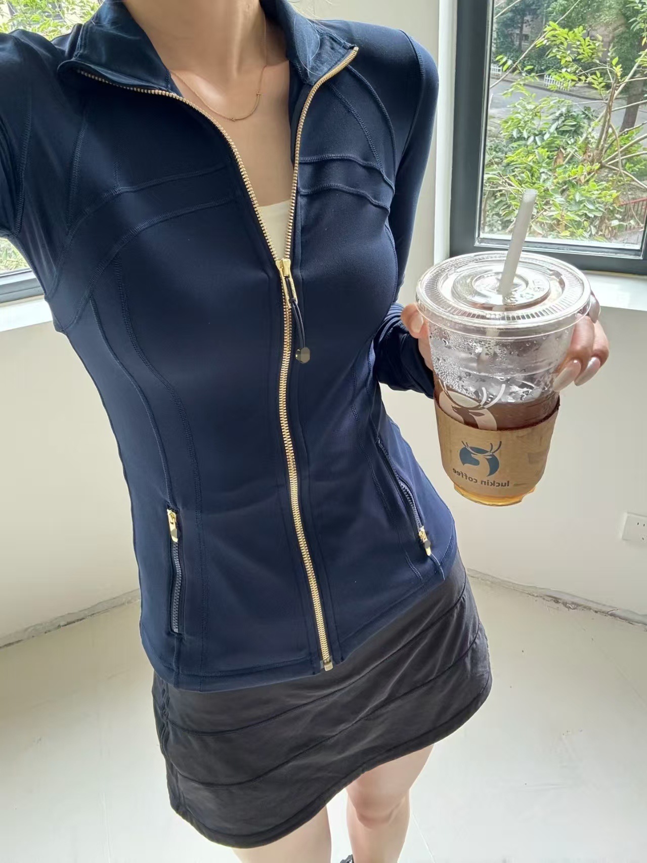 룰루 같은 요가 착용 골드 지퍼, 수직 칼라 슬림 탑 야외 스포츠 레저 피트니스 여성 자켓 정의
