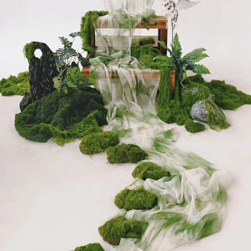 아보카도 그린 그라디언트 거즈 맨틀 레트로 중국 스타일 유치원 Huanchuang 결혼식 배경 녹색 원사 한푸 메쉬 진 쑤언스토어 가기
