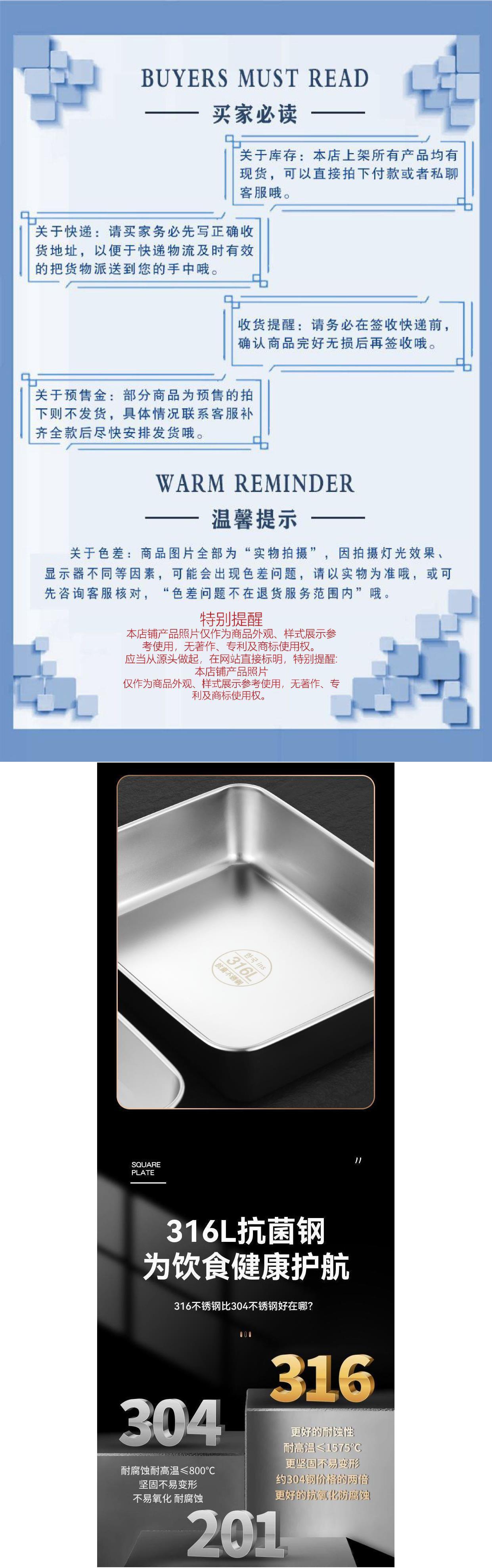 316 스테인레스 스틸 스퀘어 플레이트 스테인레스 스틸 트레이 접시 바베큐 플레이트 라이스 플레이트 아이언 플레이트 직사각형 진 쑤언스토어 가기