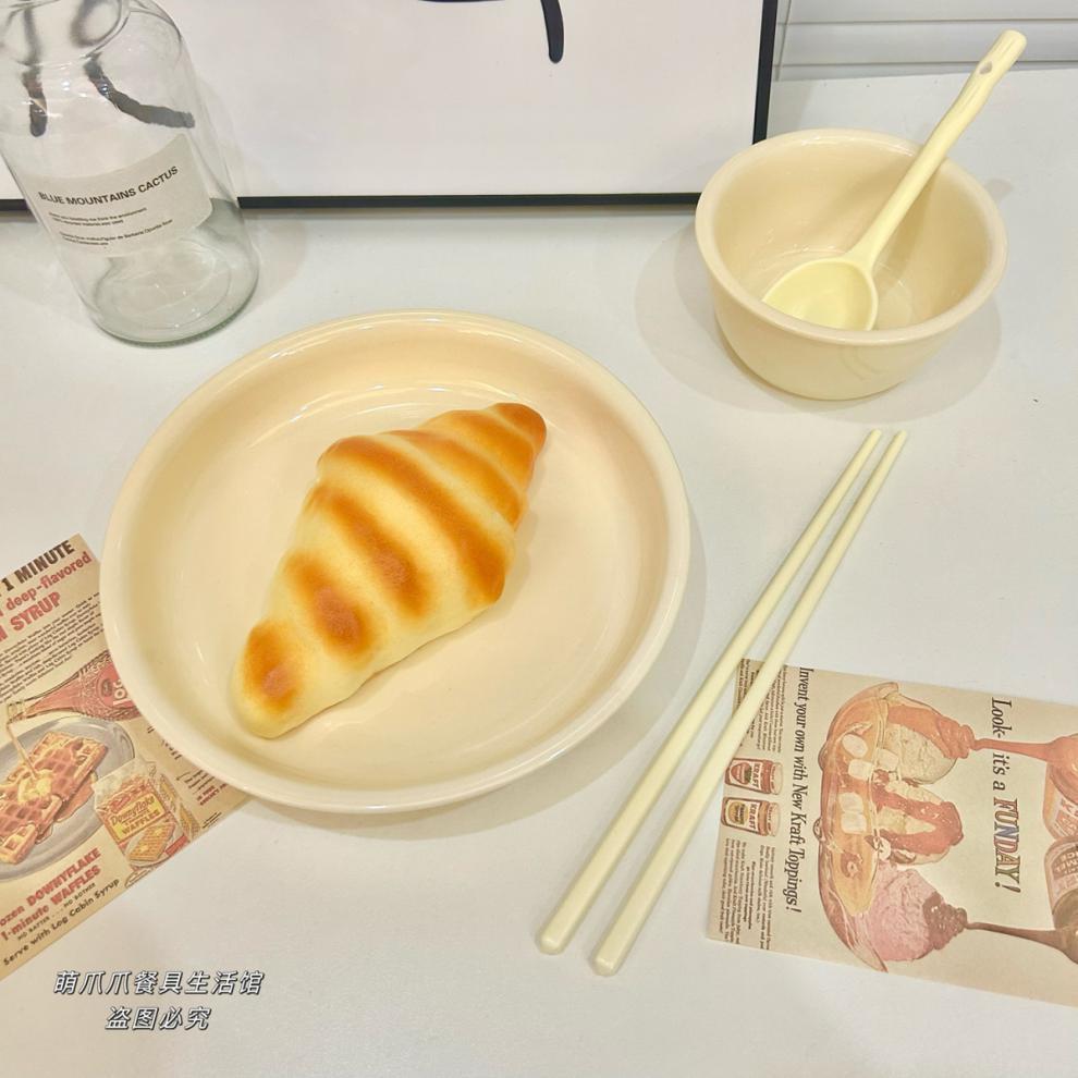 가정용 인스턴트 국수 그릇 크림 한 사람이 저 유약 컬러 식기 세라믹 그릇 크림 바람 크림 옐로우 플레이트 배치 Qin Xuan을 먹고스토어 가기