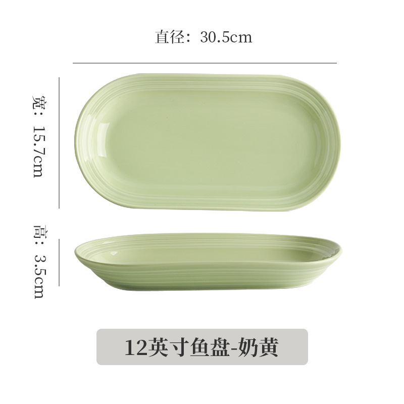 • Miyun 시리즈 12inch 유럽 타원형 생선 접시 - 밀크 그린