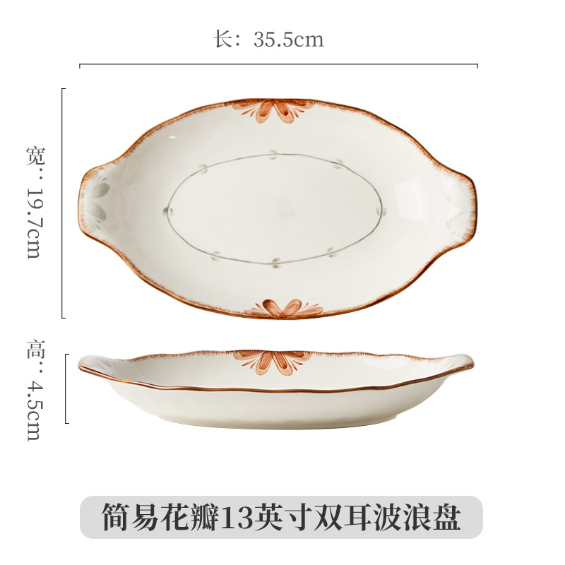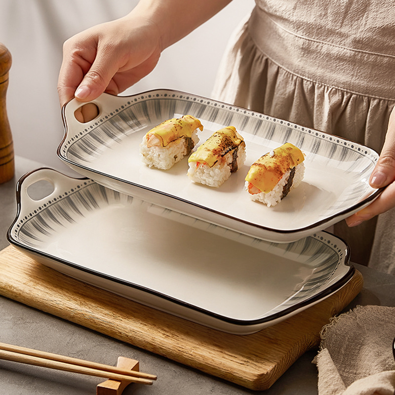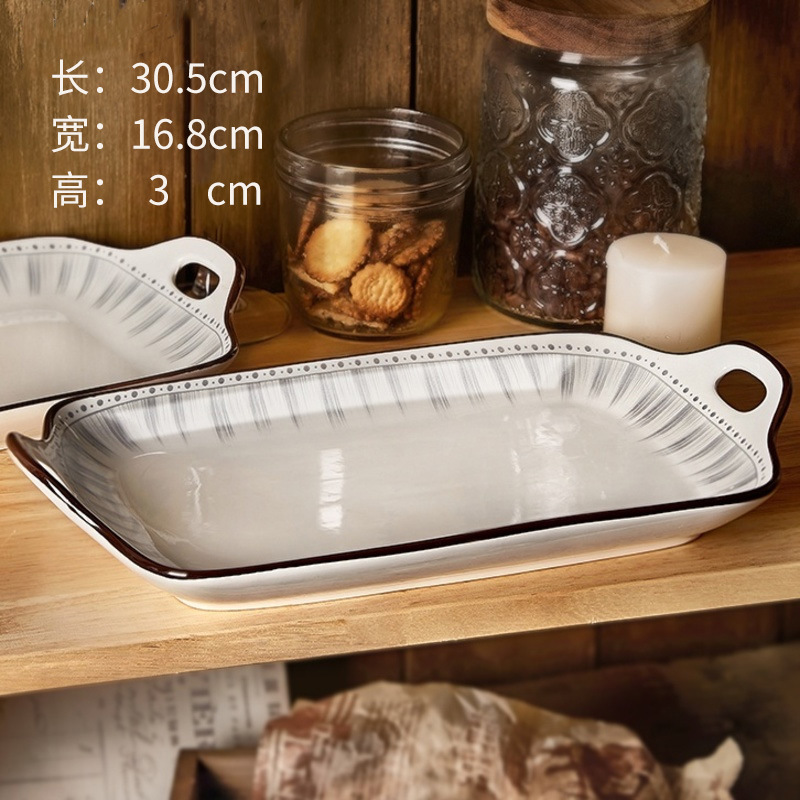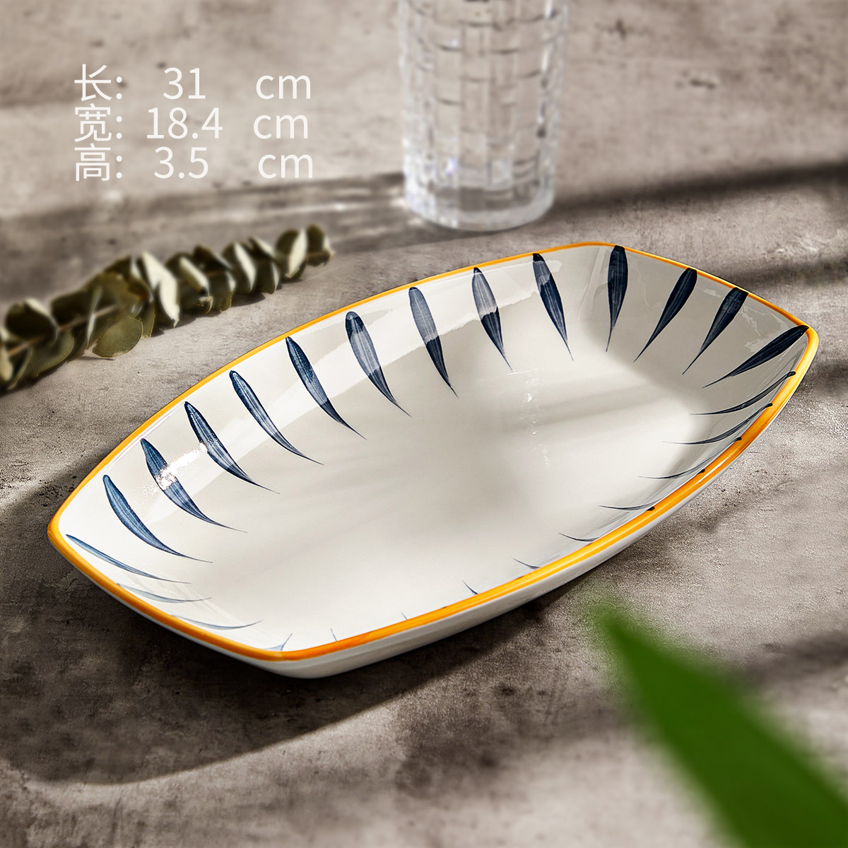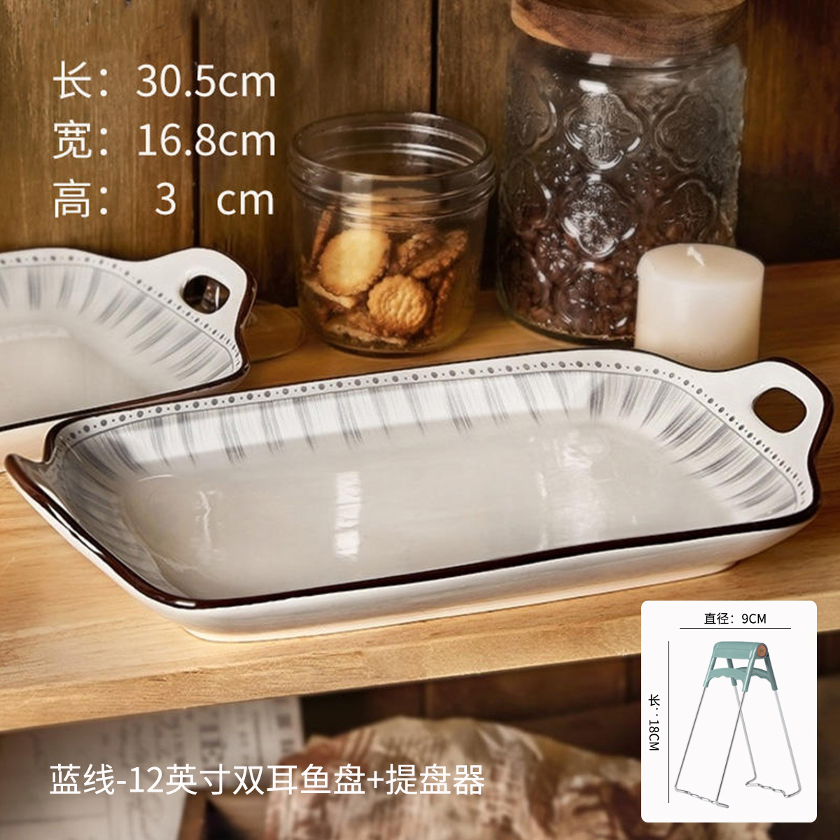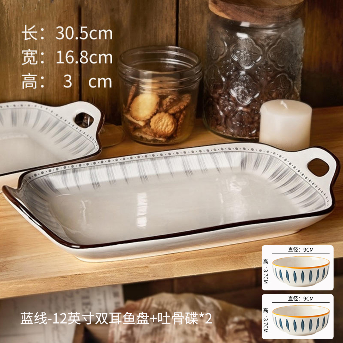 Binaural 생선 접시 가정용 찐 생선 접시 감각 세라믹 생선 그릇 어류 분지 식기 직사각형 생선 요리 큰 요리스토어 가기