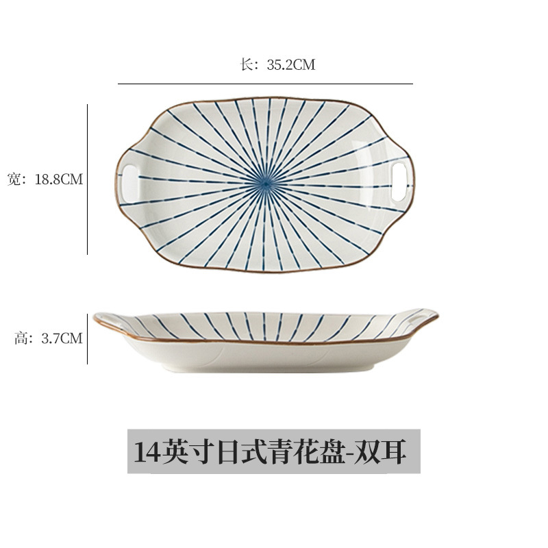• 14inch 쌍귀어접시 - 일본식 파란색과 흰색
