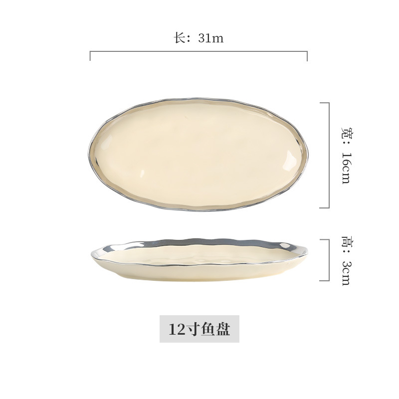 • 노르딕 천 패턴 와이드 실버 엣지 - 12inch 피쉬 플레이트 DZ