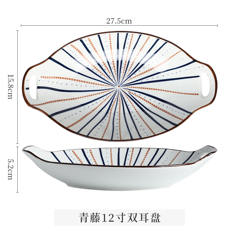 • 12inch 쌍귀어접시 - 일본식 파란색과 흰색