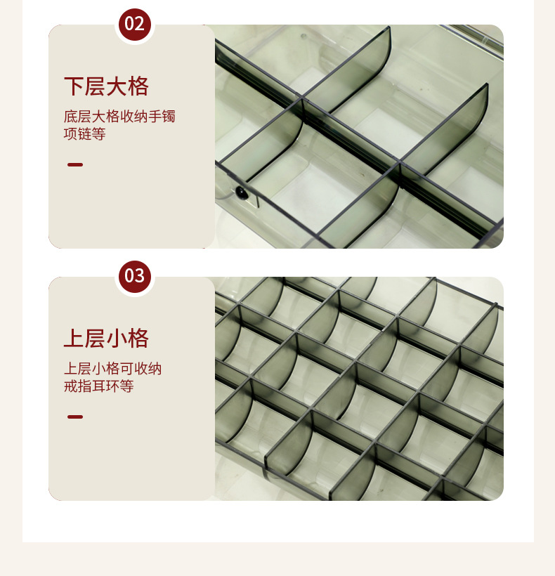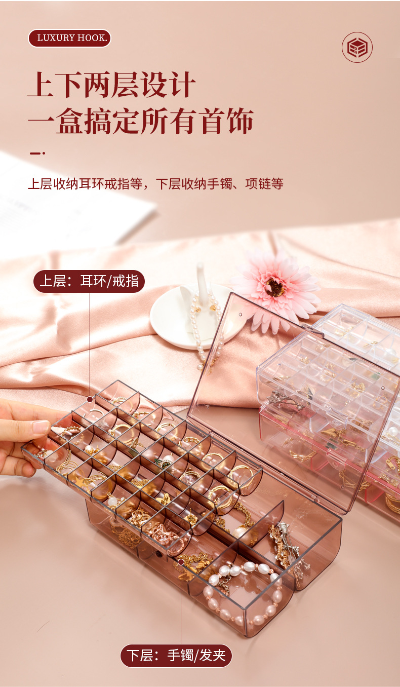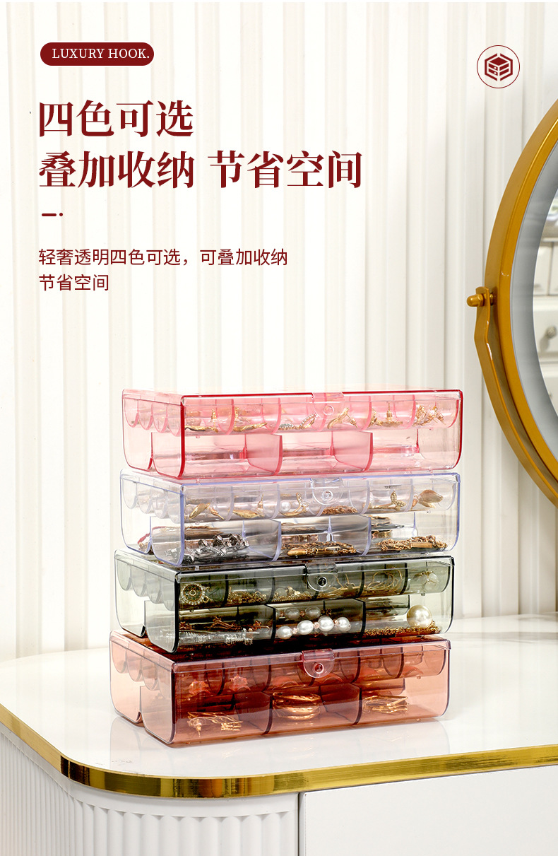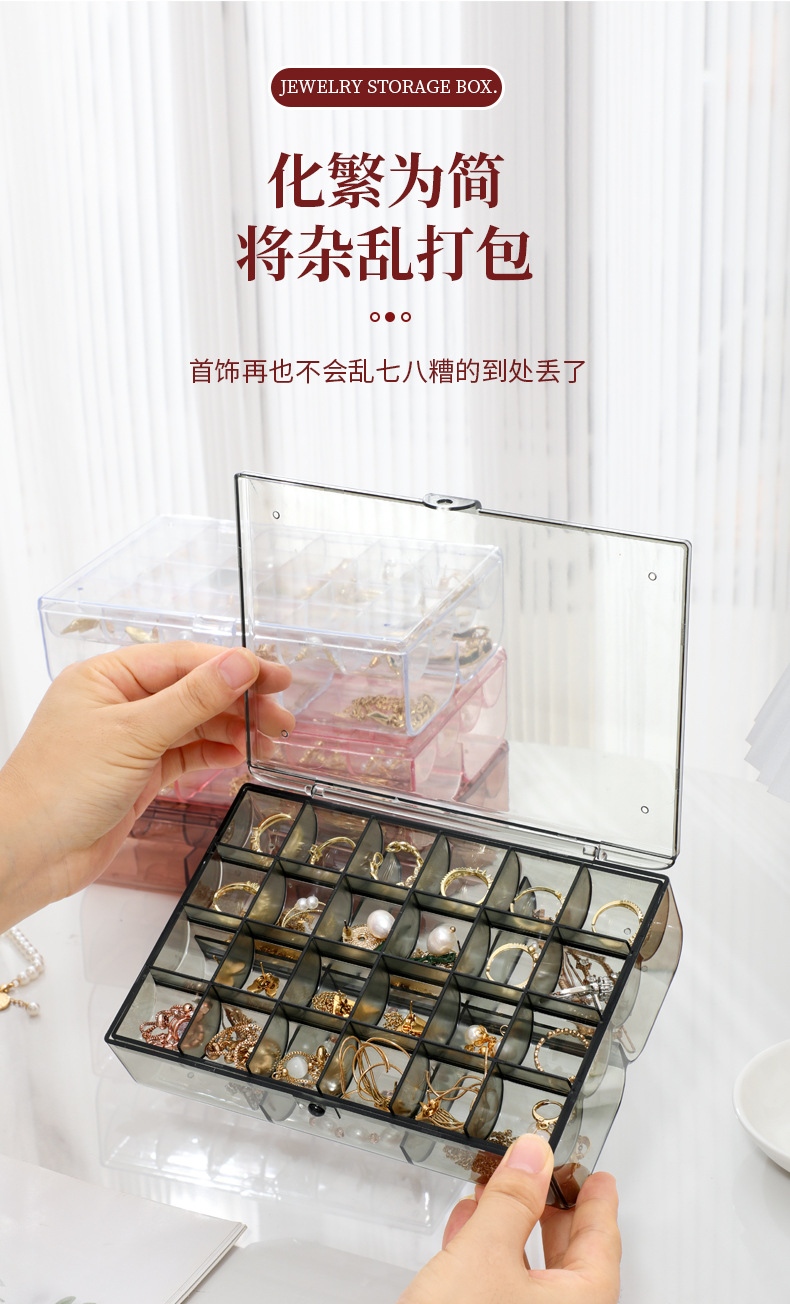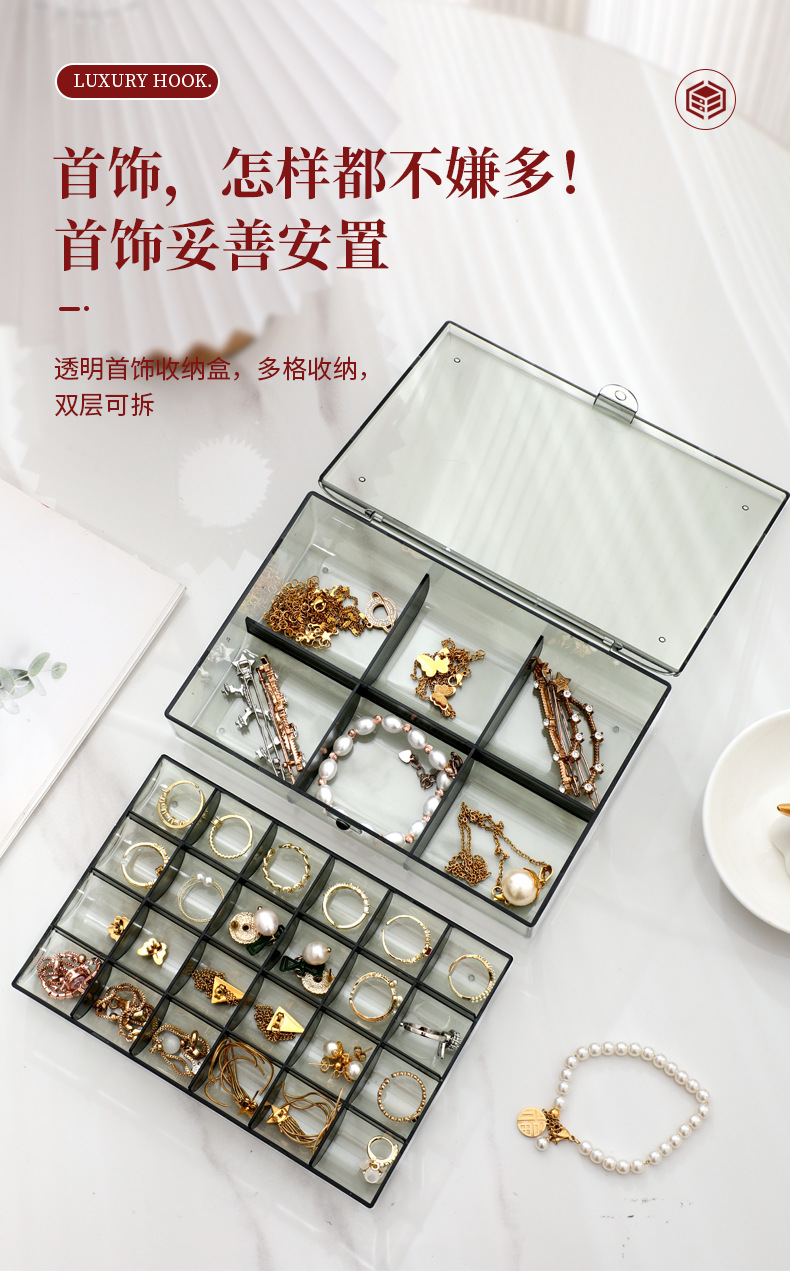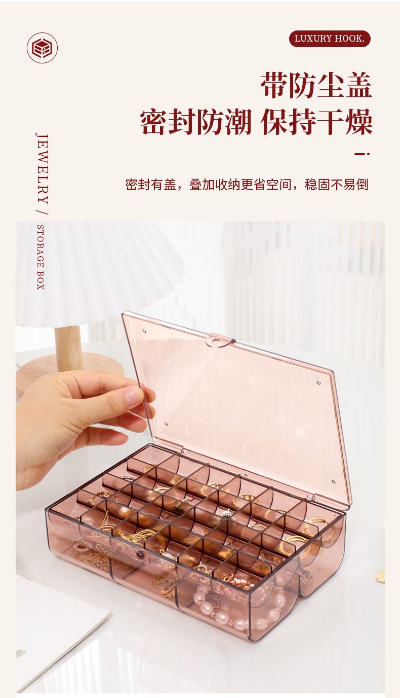 높은 가치의 보석 상자 귀걸이 목걸이 팔찌 분할 투명 보석 상자 데스크탑 방진 분할 진 쑤언