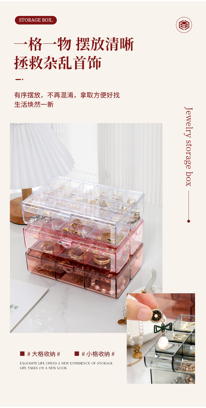 높은 가치의 보석 상자 귀걸이 목걸이 팔찌 분할 투명 보석 상자 데스크탑 방진 분할 진 쑤언스토어 가기