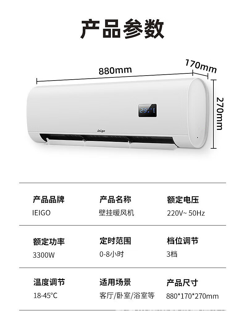 Aiig 펀치없는 벽걸이 형 히터 고성능 전기 히터 욕실 히터 가정용 전기 난방