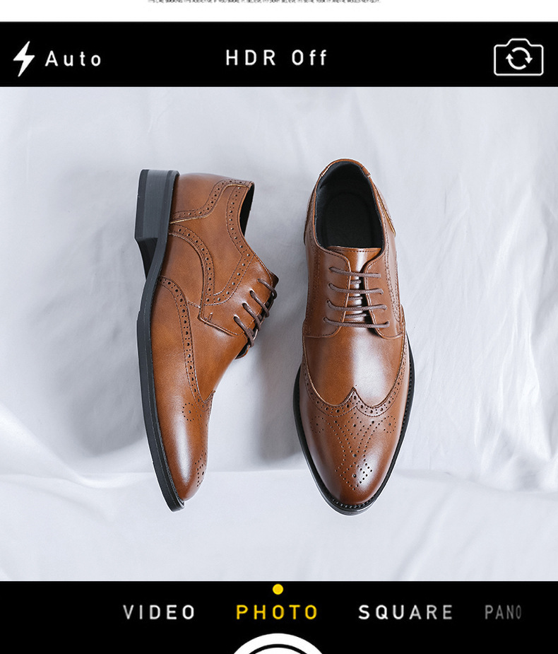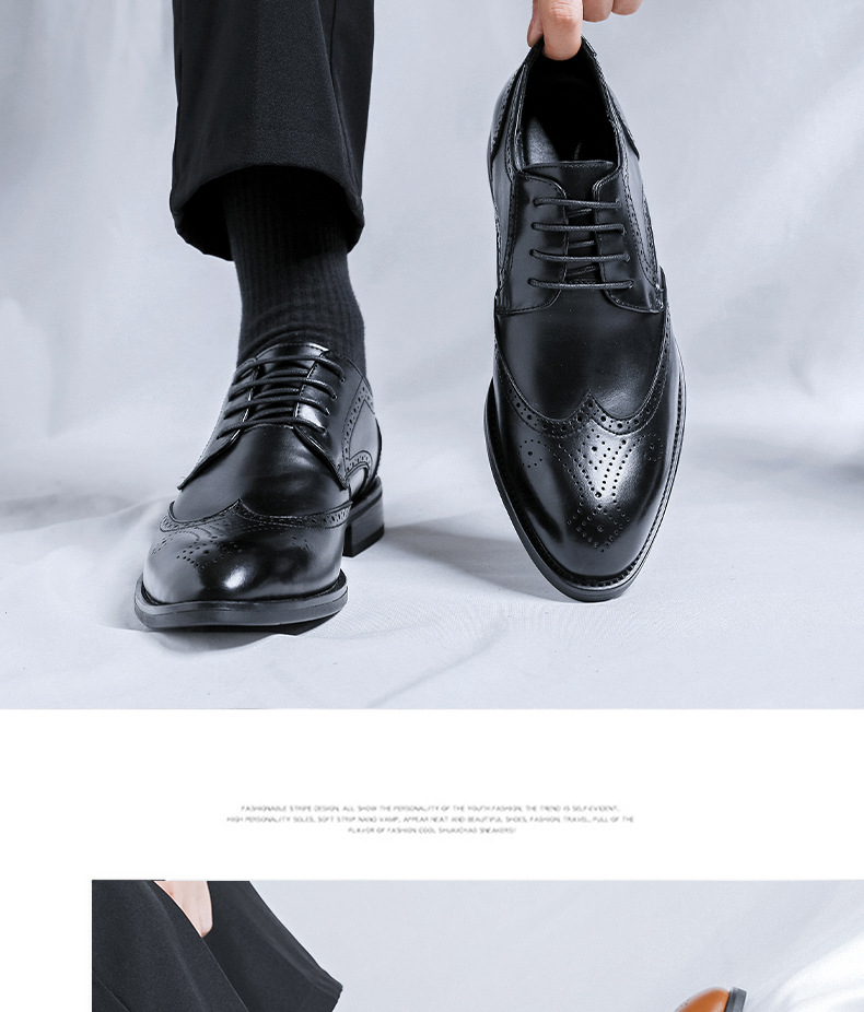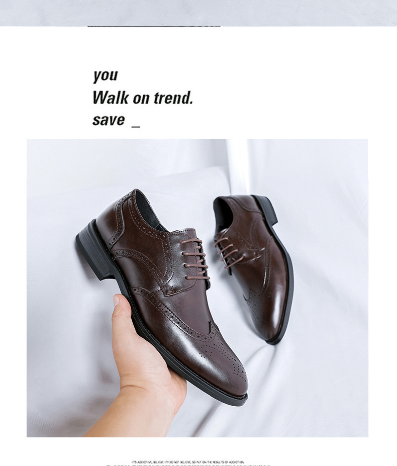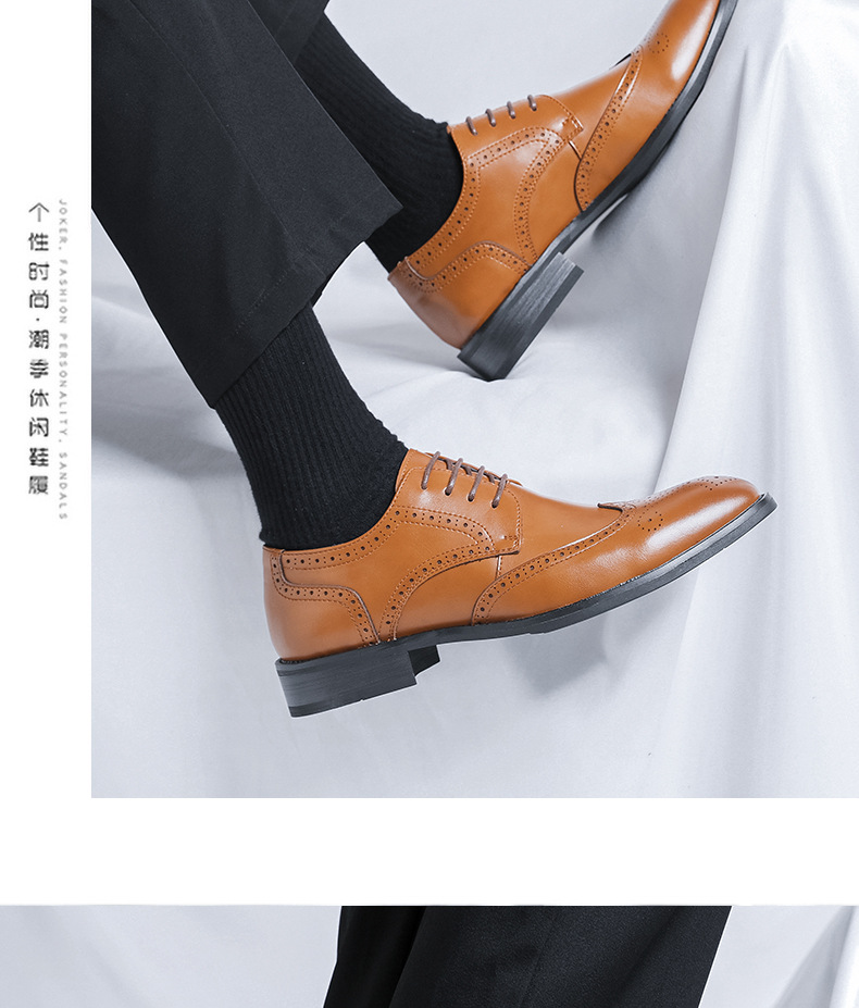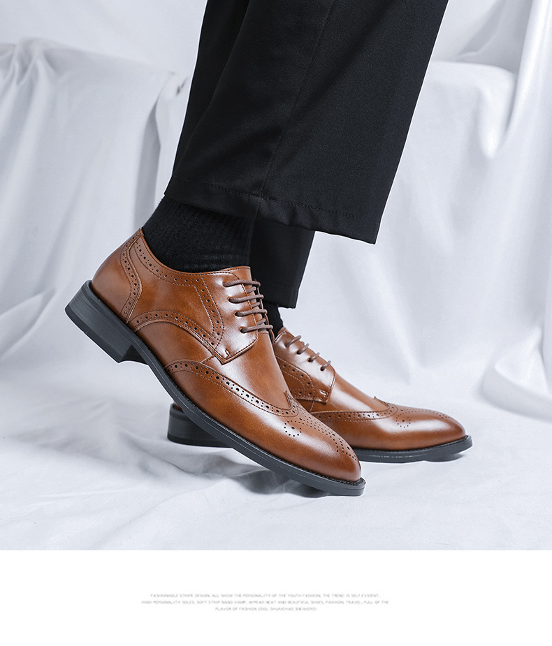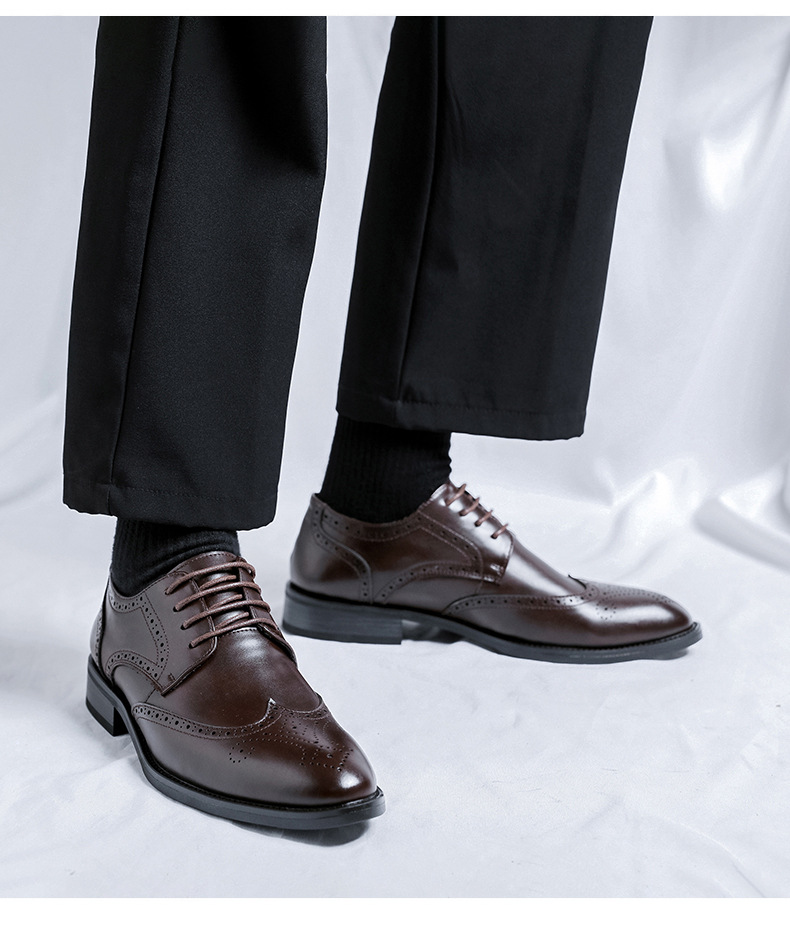 가을 2024 새로운 캐주얼 포인팅 남성 가죽 신발 영국 비즈니스 원피스 브록 조각 남성 신발 최고의 남자 신발