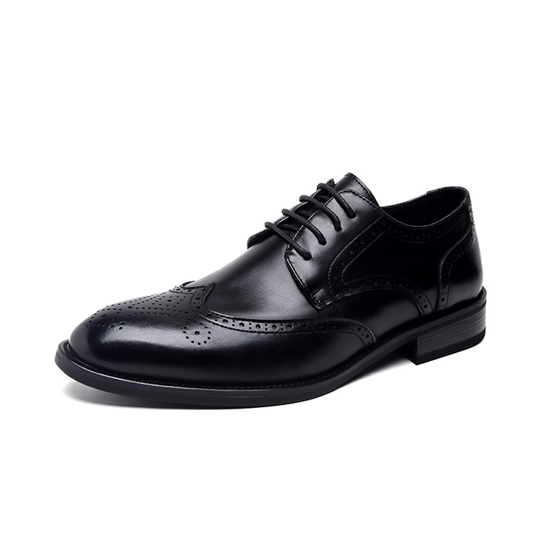 가을 2024 새로운 캐주얼 포인팅 남성 가죽 신발 영국 비즈니스 원피스 브록 조각 남성 신발 최고의 남자 신발스토어 가기
