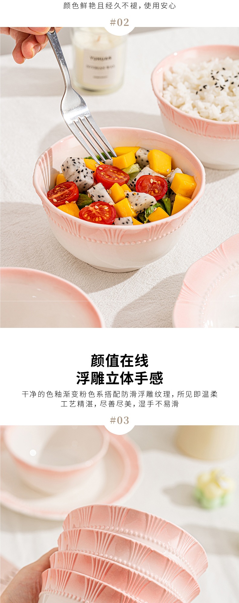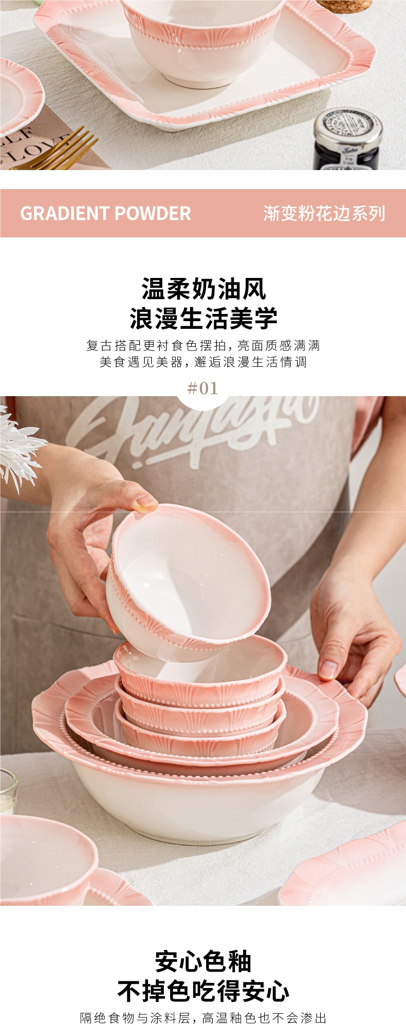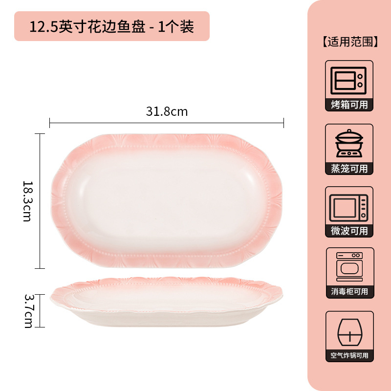 점진적 변화 분말 쌀 그릇 세라믹 가정용 높은 색상 가치 식기 수프 그릇 접시 조합 2024 새로운 접시 세트스토어 가기