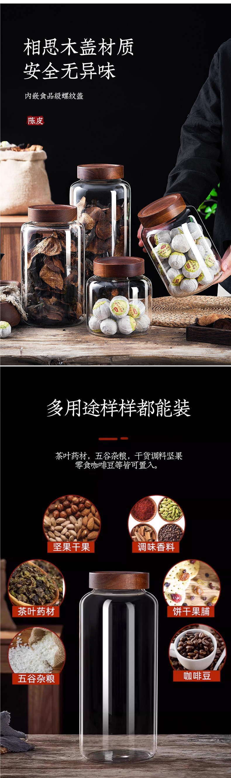 Pericarpion 저장 탱크 저장 항아리 유리 밀봉 항아리 식품 등급 유리 병 저장 항아리 차 보존 항아리