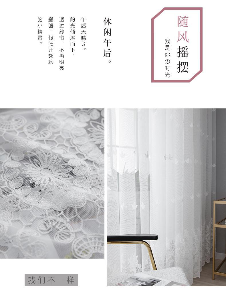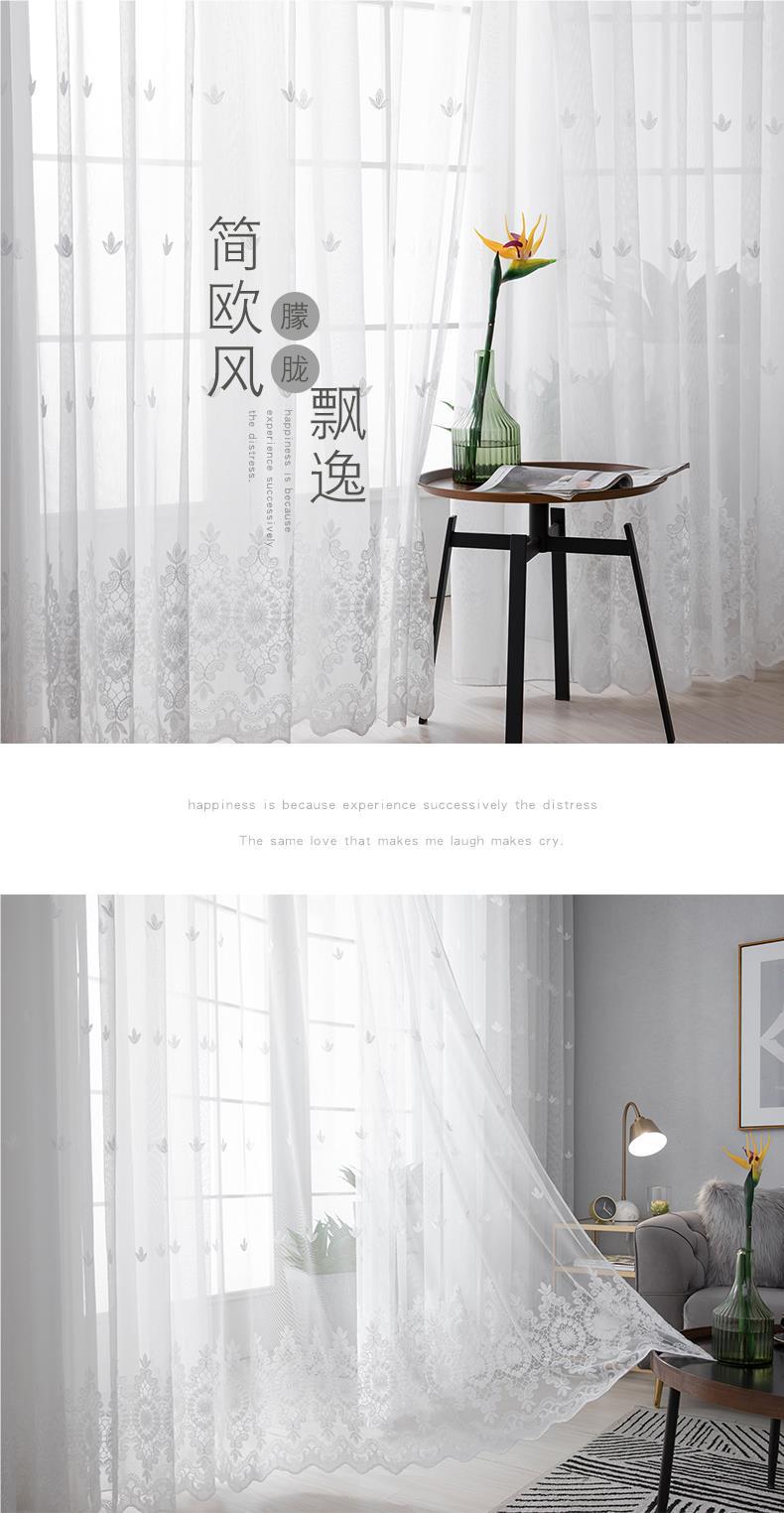 북유럽 자수 거즈 커튼 화이트 거즈 투명 발코니 거즈 거실 침실 베이 창 파티션 완료 파티션 창 진쑤언스토어 가기