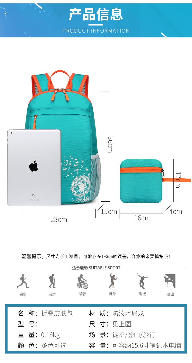 야외 경량 접이식 배낭 여행 가방 스포츠 휴대용 어린이 학교 가방 울트라 라이트 유행 귀여운