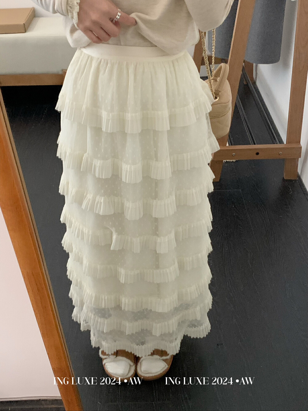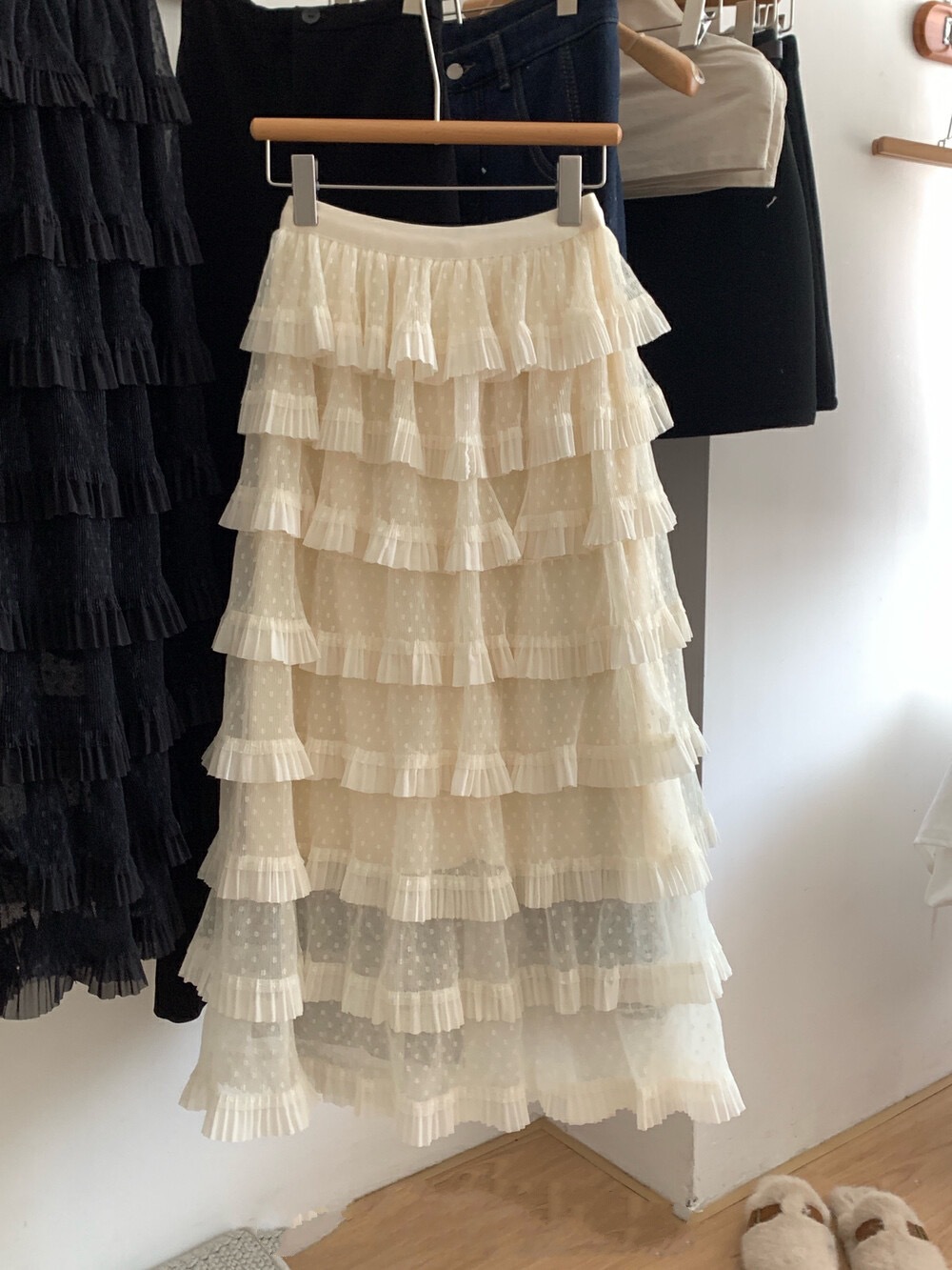 한국 스타일 도트 멀티 레이어 메쉬 케이크 스커트 여성 봄 새로운 높은 허리 요정 퍼프 베일 스커트 롱 스커트스토어 가기