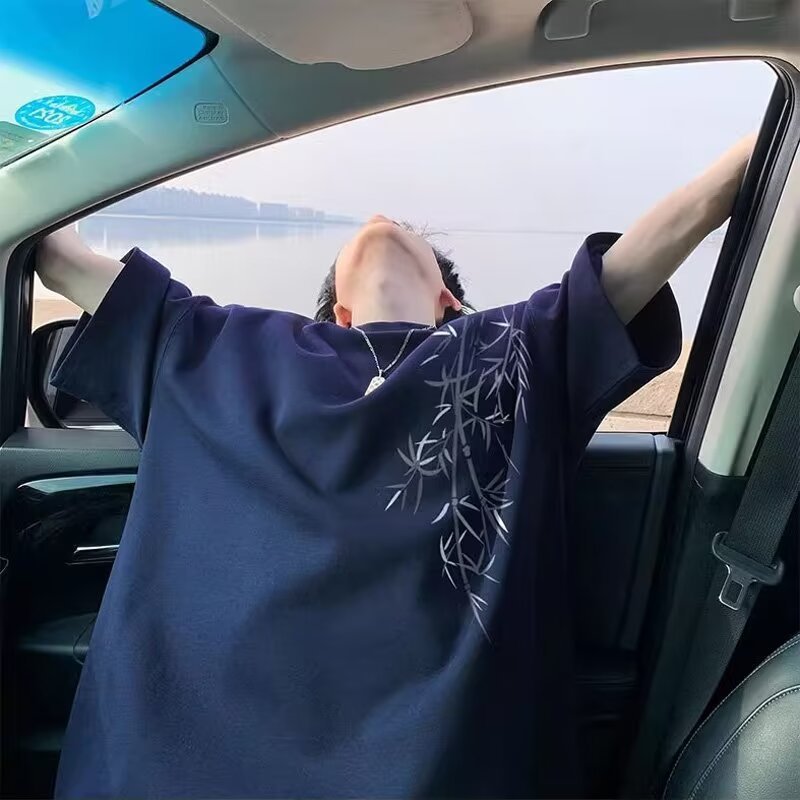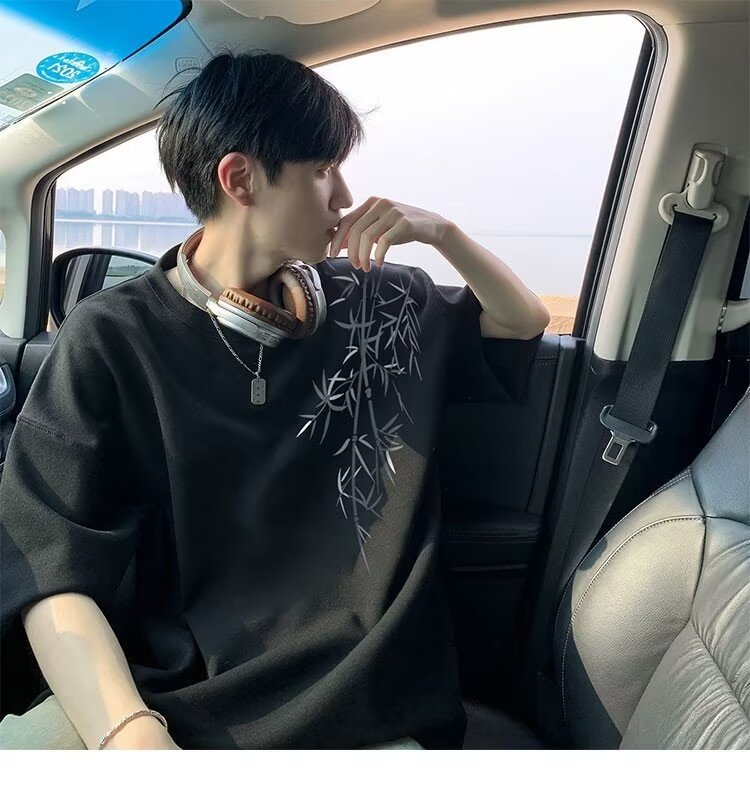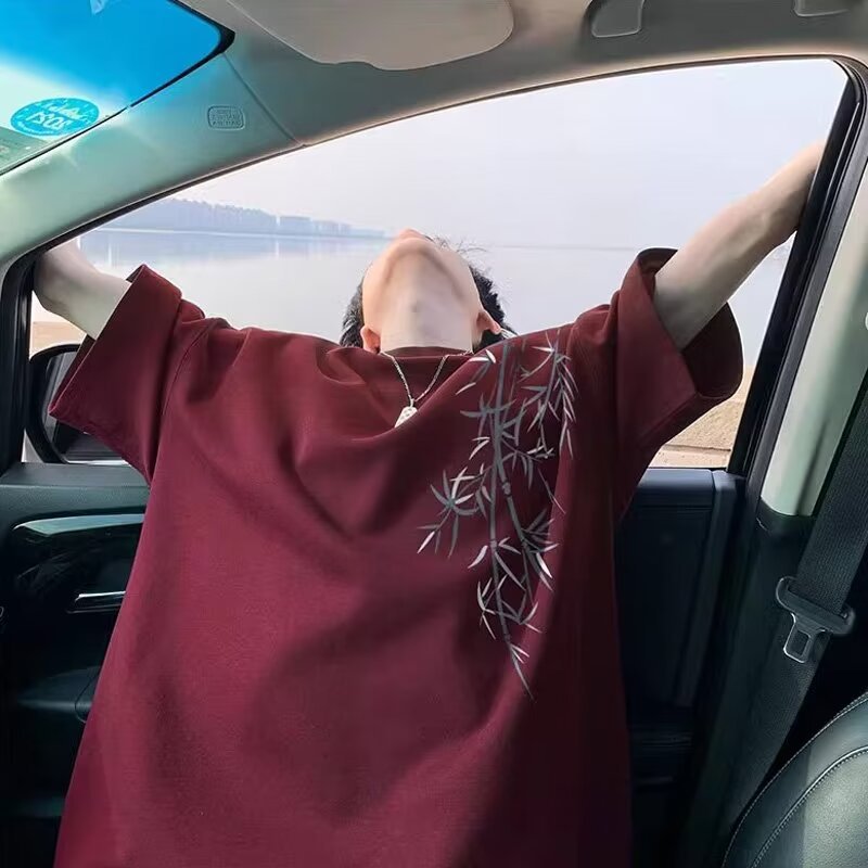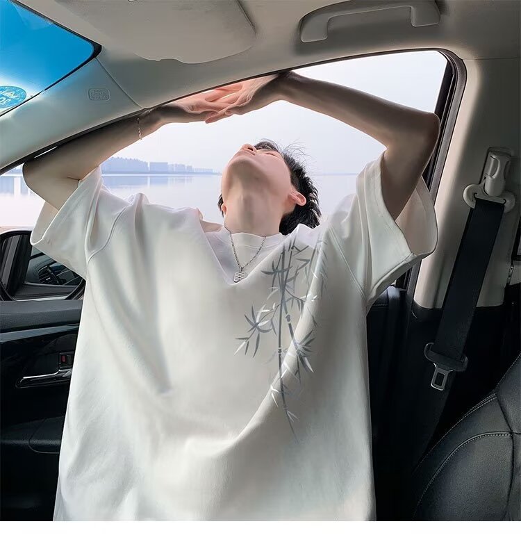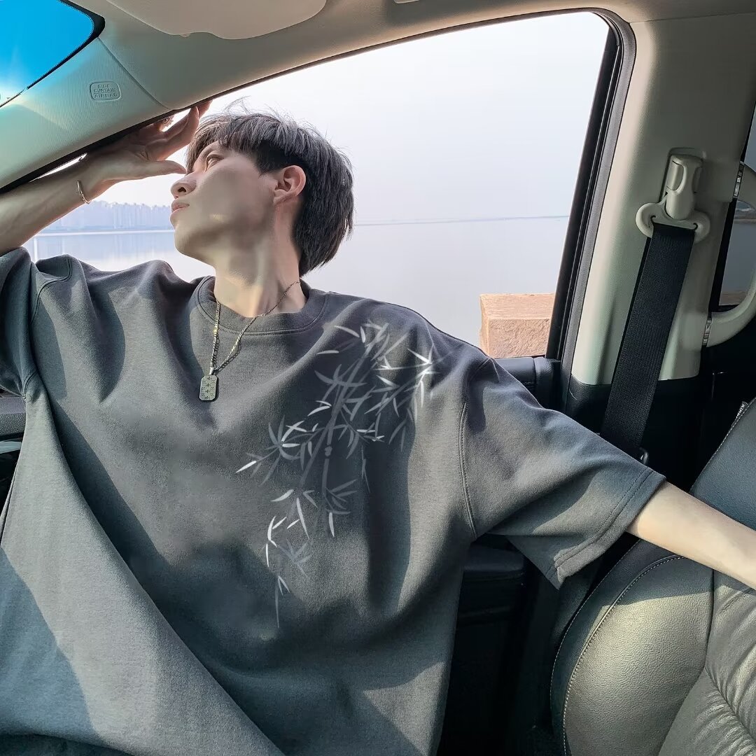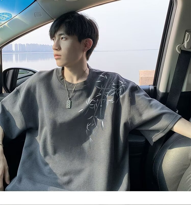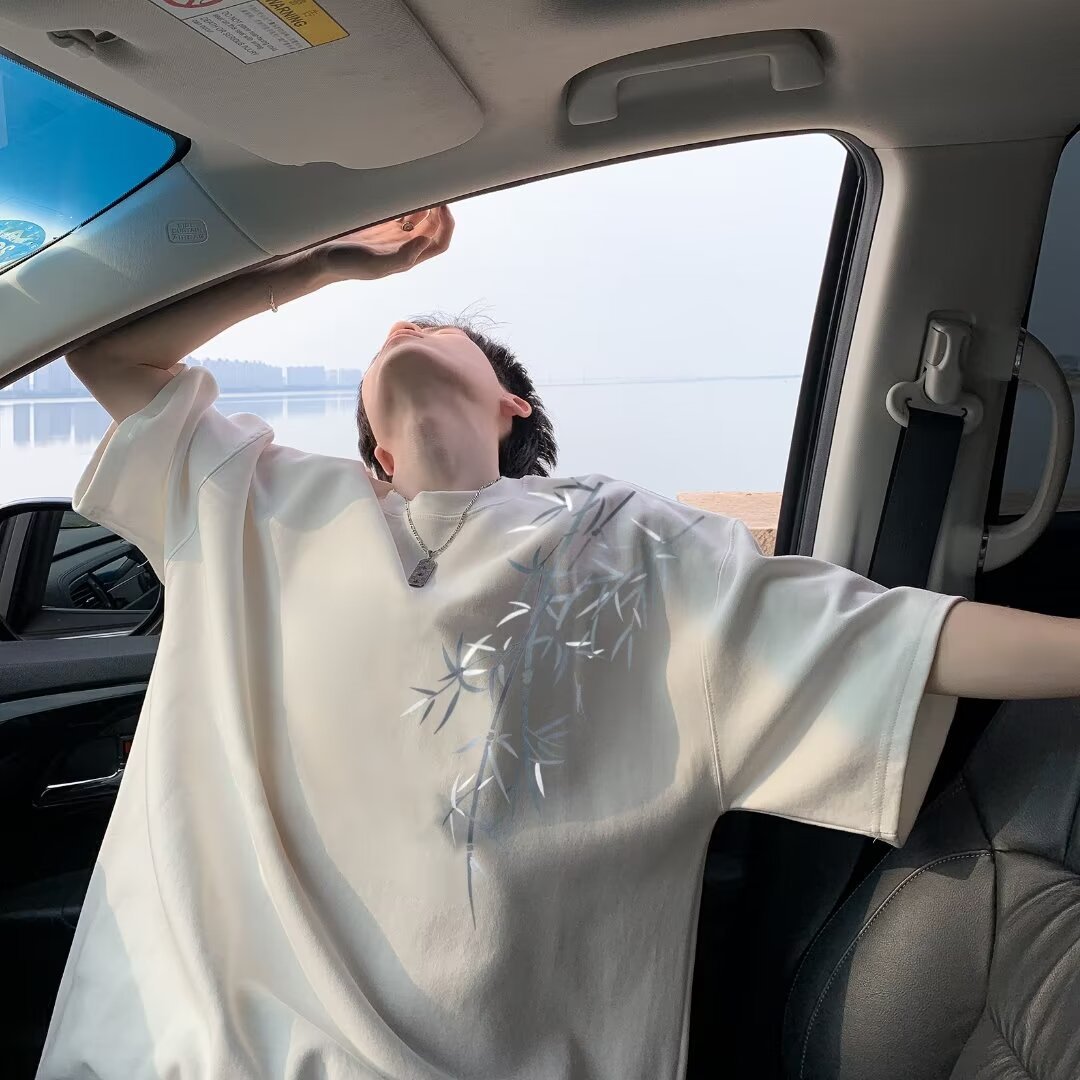 중국 스타일 국가 스타일 대나무 중량급 반팔 남성 2024 여름 패션 브랜드 느슨한 플러스 사이즈 하이 스트리트 반소매 올매치 코튼 티셔츠스토어 가기