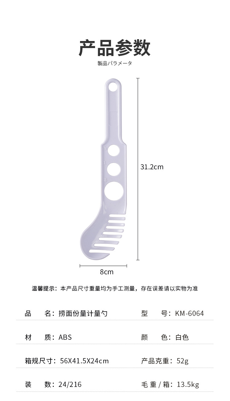 NSH 6064 다기능 국수 스푼 측정 구멍 국수 숟가락 수량 측정 숟가락 소쿠리스토어 가기