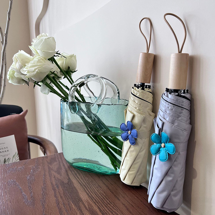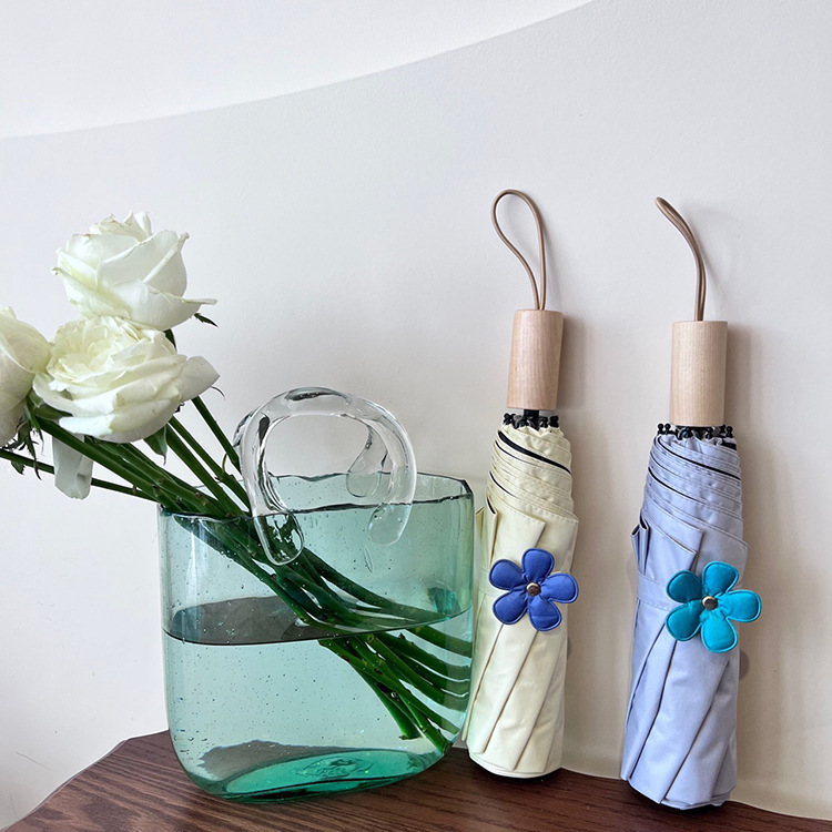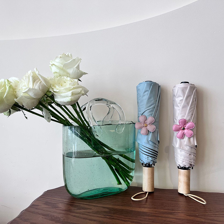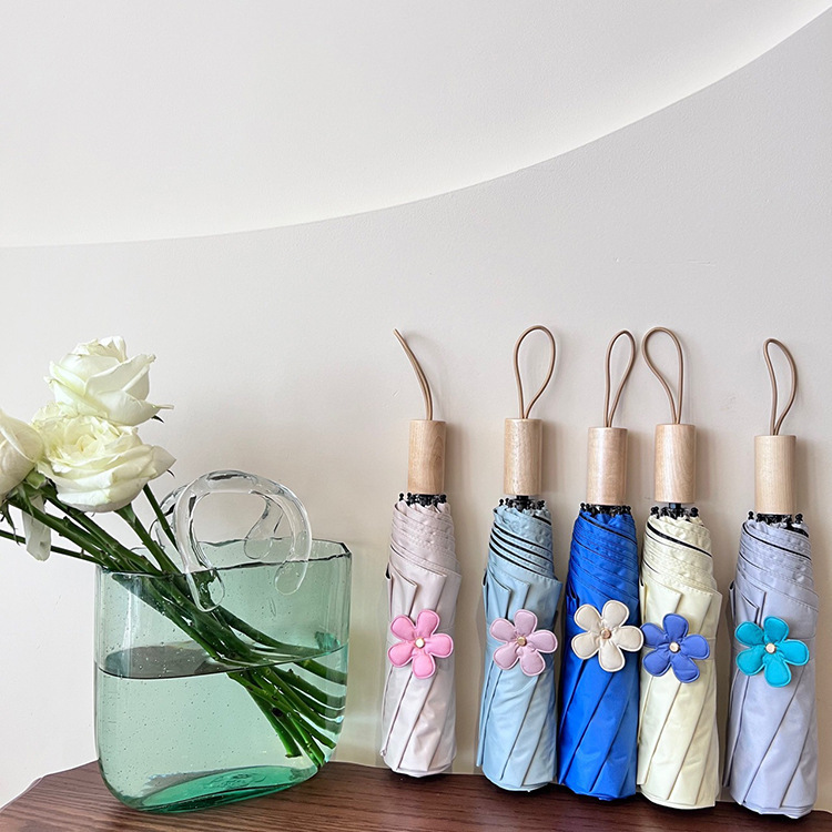 새로운 3 배 우산 새싹 접이식 우산 UV 보호 자외선 차단제 비 이중 사용 도매 창조적 인 검은 고무 우산 로고스토어 가기