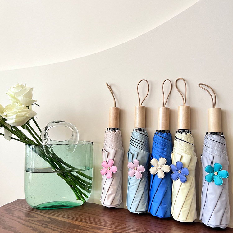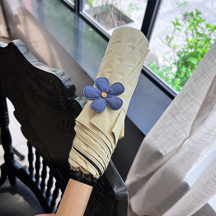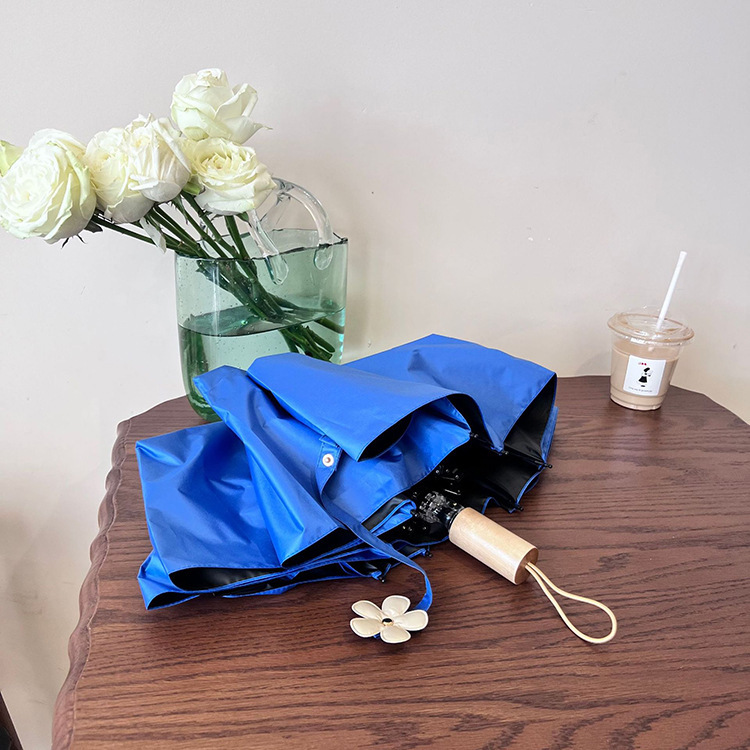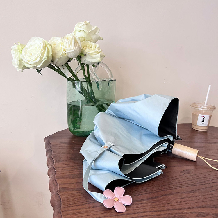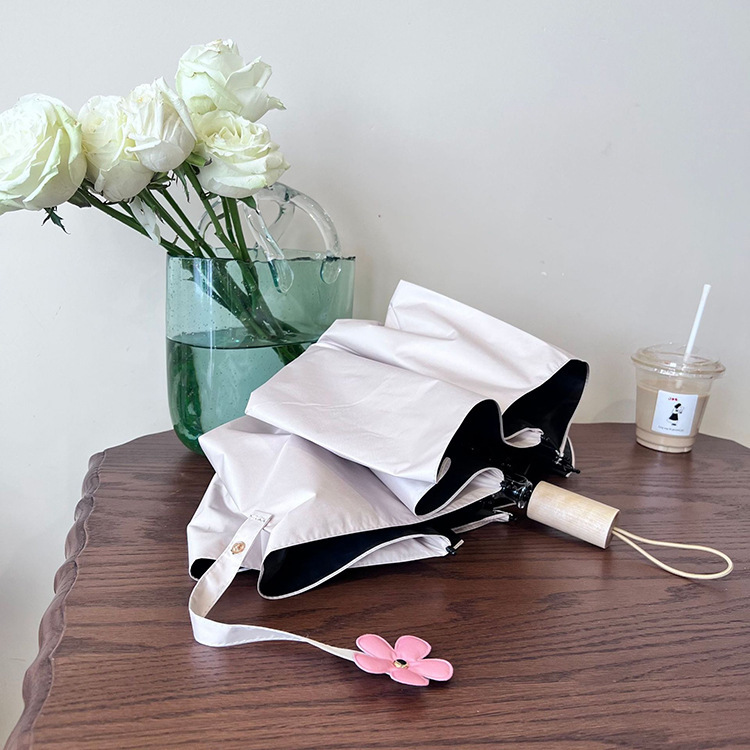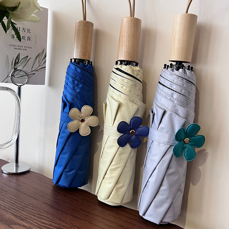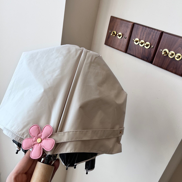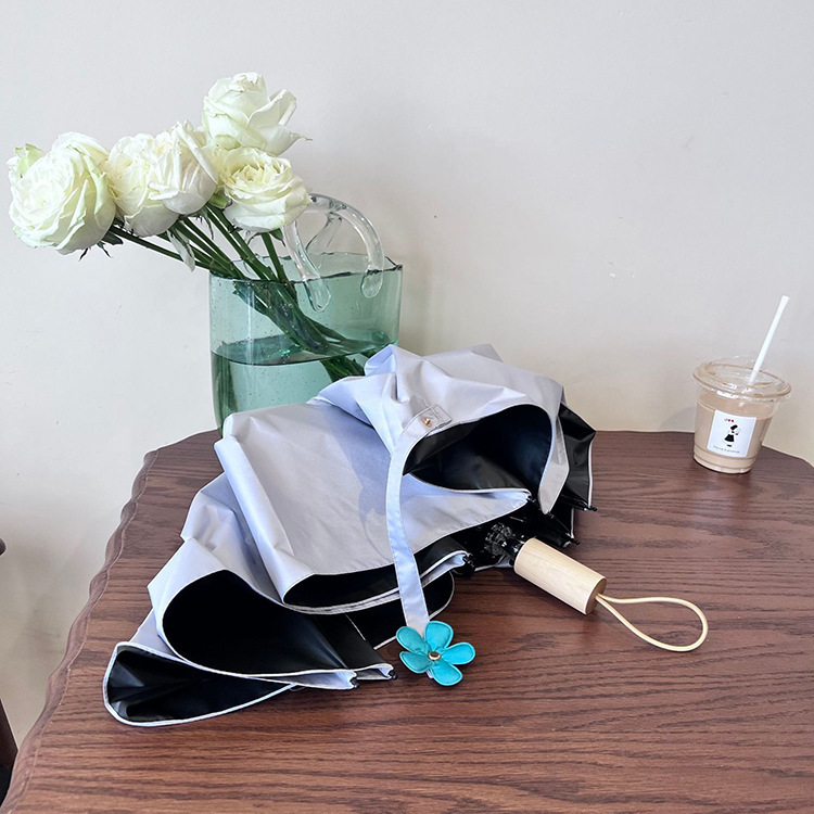 새로운 3 배 우산 새싹 접이식 우산 UV 보호 자외선 차단제 비 이중 사용 도매 창조적 인 검은 고무 우산 로고