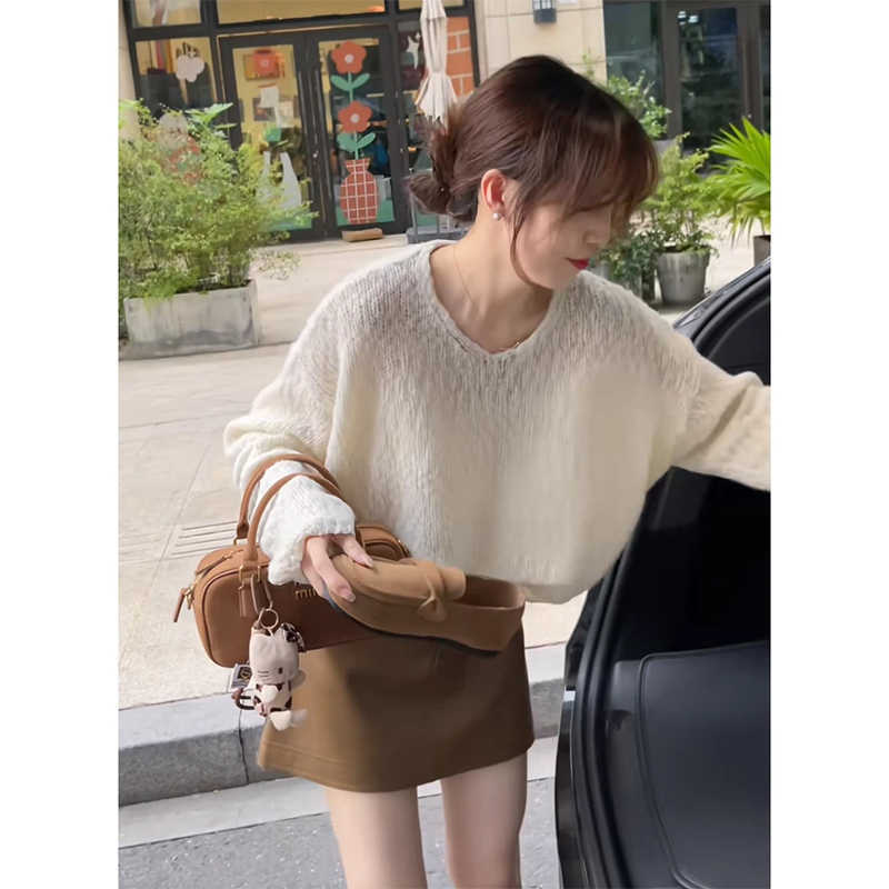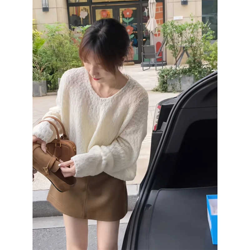 가을 올해 인기있는 아름다운 세트 여성용 작은 스웨터 크루 넥 스웨터 웨스턴 스타일 스커트 2 세트스토어 가기