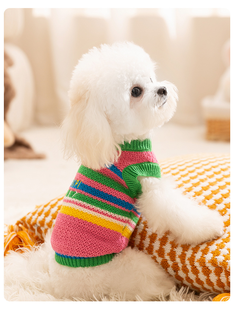 가을과 겨울 개 간단한 색 줄무늬 스웨터 따뜻한 겨울 스웨터 풀오버 두 다리 애완 동물 개 옷스토어 가기