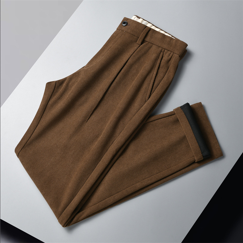 겨울 기모 남성용 캐주얼 바지 가을과 겨울 슬림 핏 스트레이트 코듀로이 비즈니스 바지 가벼운 럭셔리 하이 엔드 센스 작은 바지
