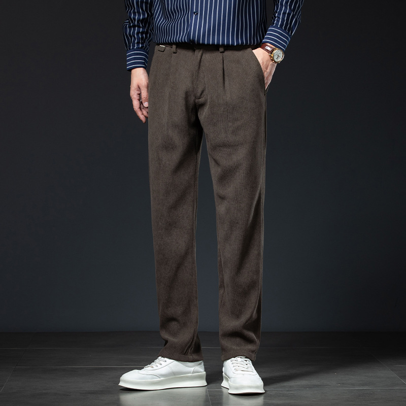 겨울 기모 남성용 캐주얼 바지 가을과 겨울 슬림 핏 스트레이트 코듀로이 비즈니스 바지 가벼운 럭셔리 하이 엔드 센스 작은 바지스토어 가기