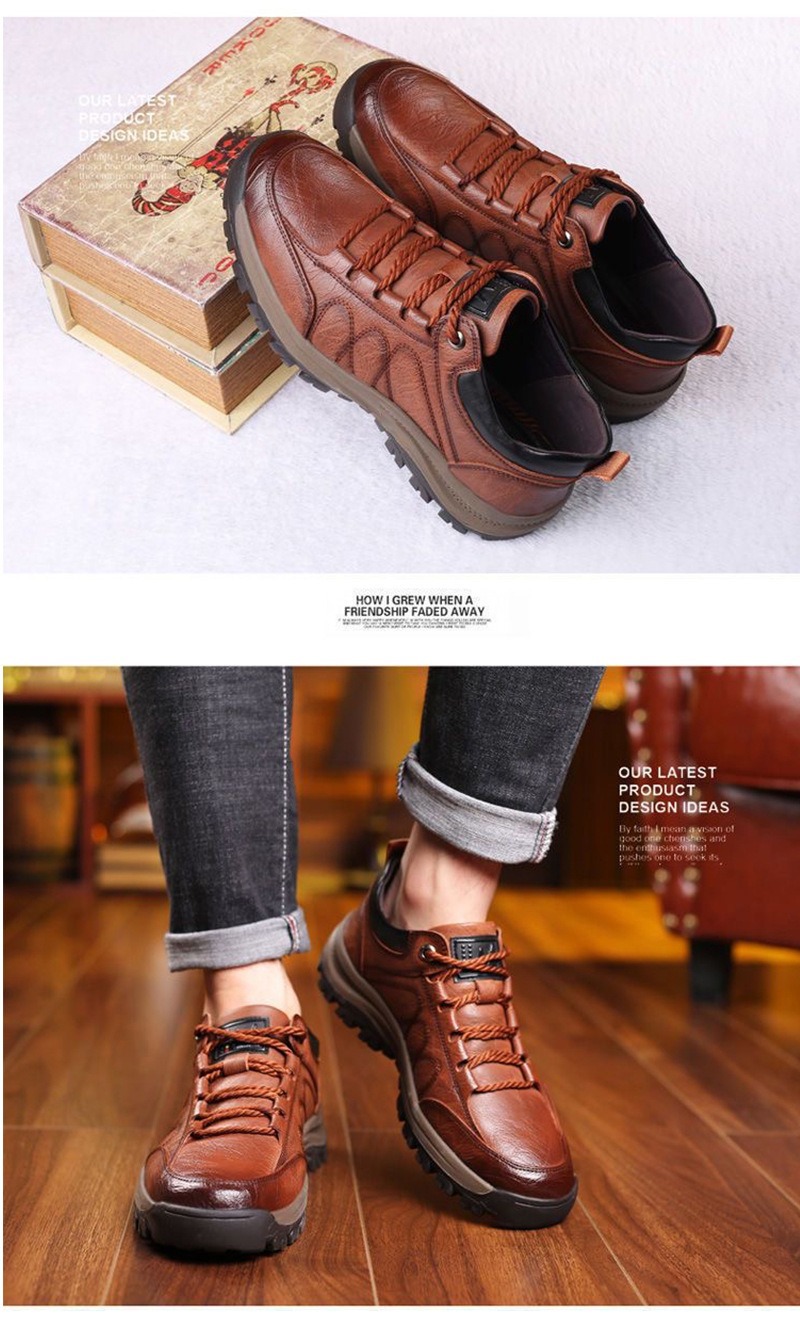 남성 캐주얼 가죽 신발 발수 부드러운 단독 등산 신발 가죽 운동화 새로운 스타일 레이스 업 패션 캐주얼 남성 신발스토어 가기