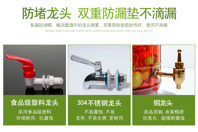 두꺼운 유리 스파클링 와인 병 수도꼭지 10kg 양조 병에 담근 항아리 와인 항아리 봉인 진 쑤언