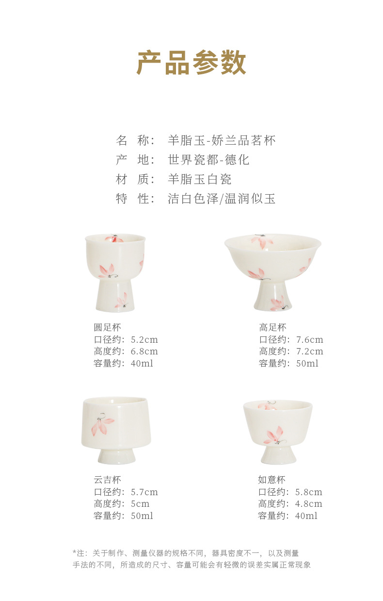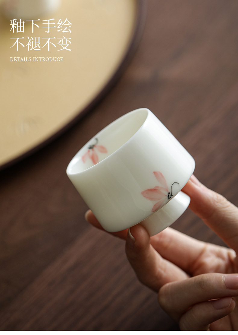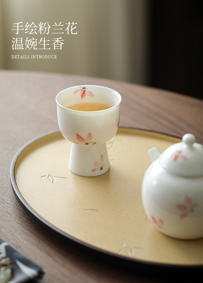 손으로 그린 목련 양 옥 화이트 도자기 하이 풋 티 컵 하이 페이스 가치 여성 스페셜 마스터 컵 티 티 티 고블 릿