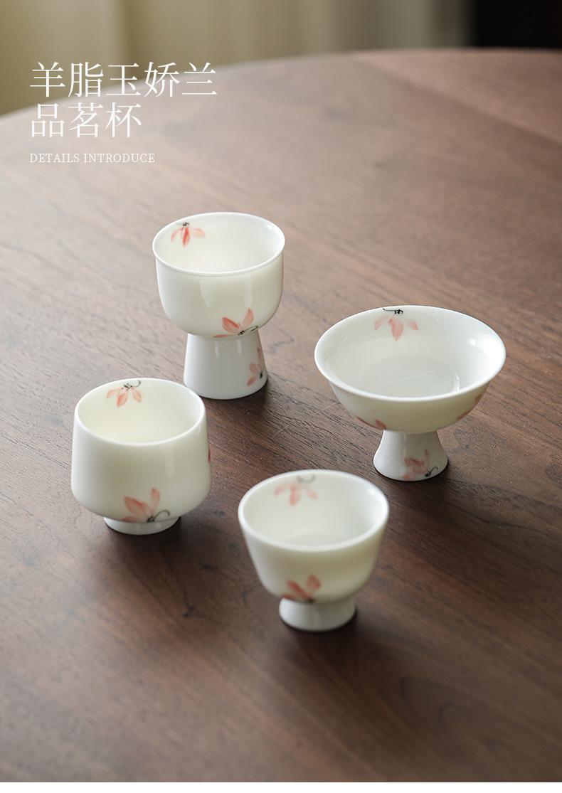 손으로 그린 목련 양 옥 화이트 도자기 하이 풋 티 컵 하이 페이스 가치 여성 스페셜 마스터 컵 티 티 티 고블 릿스토어 가기