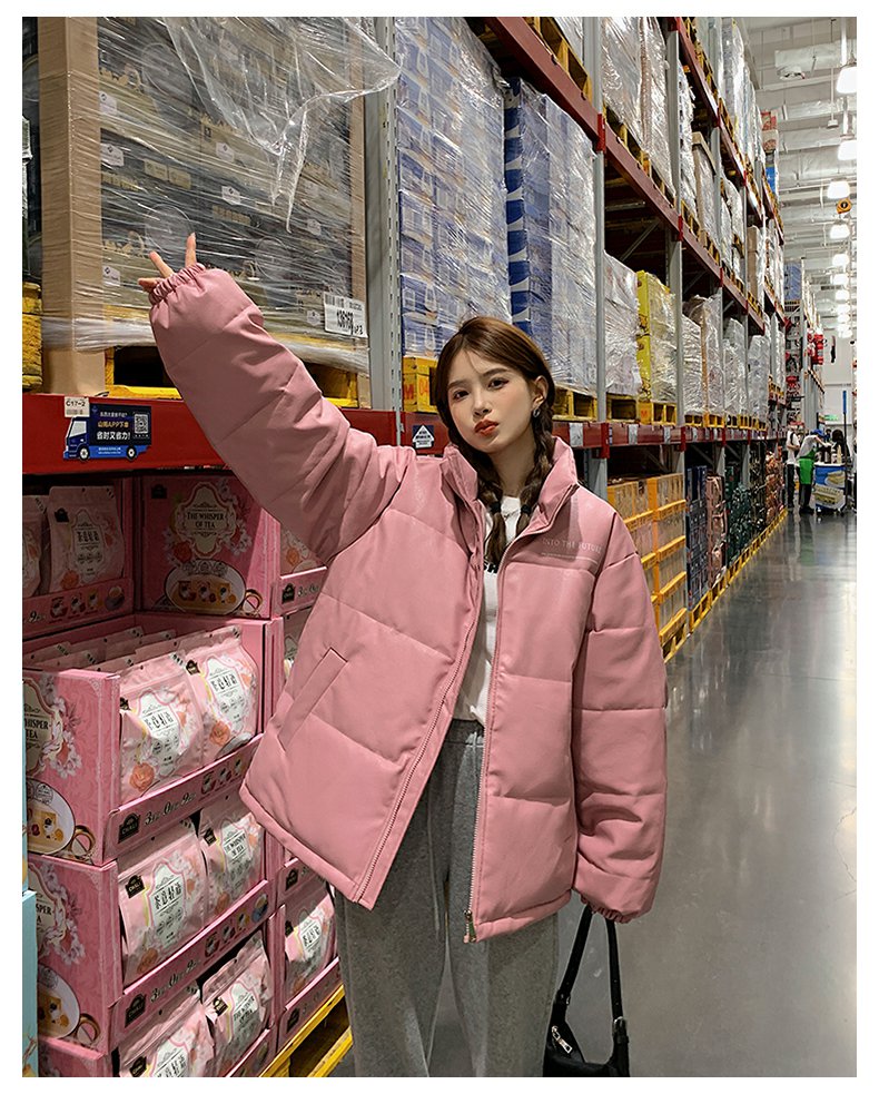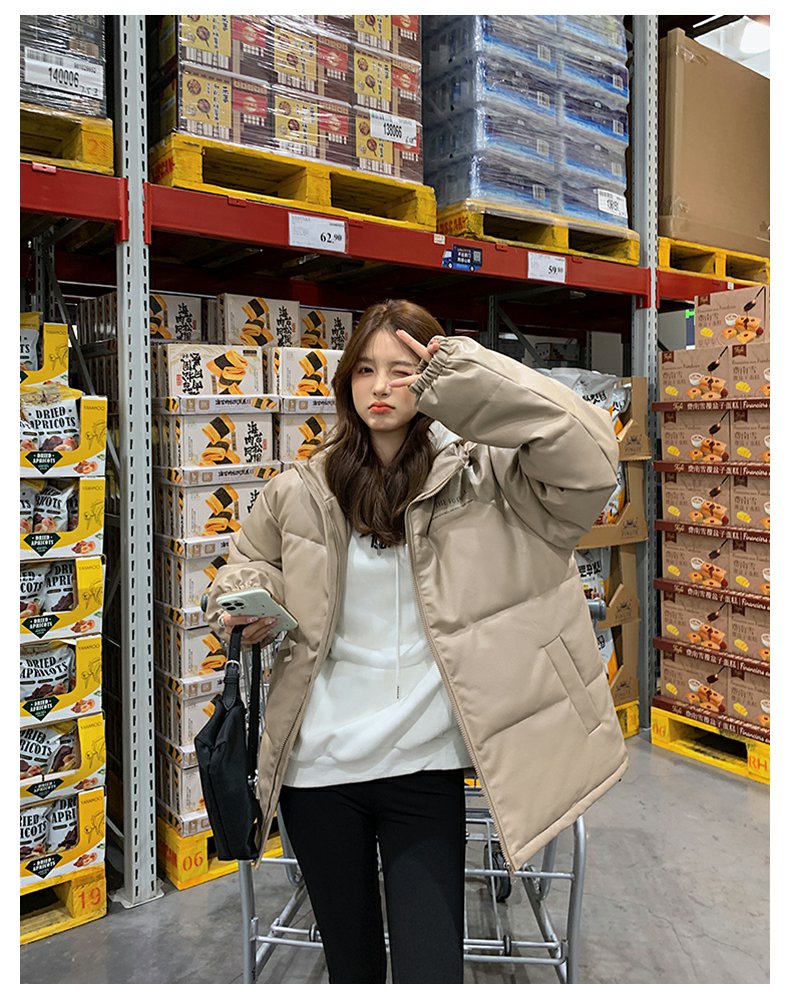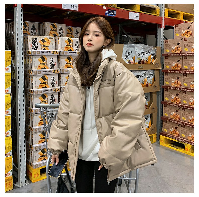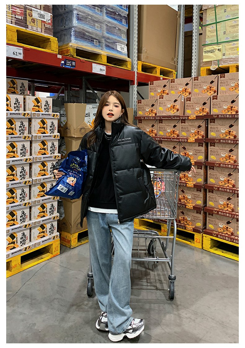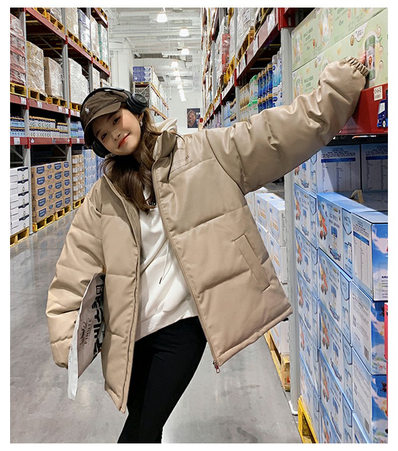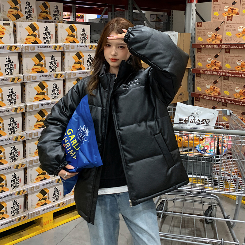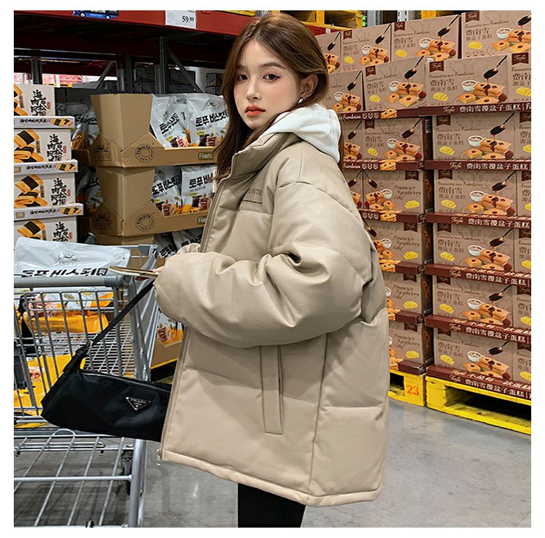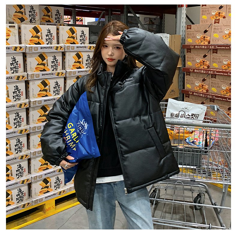워시프리 PU 가죽면 패딩 재킷 여성용 중간 길이 2024 새로운 겨울 재킷 코트면 패딩 재킷 조수스토어 가기