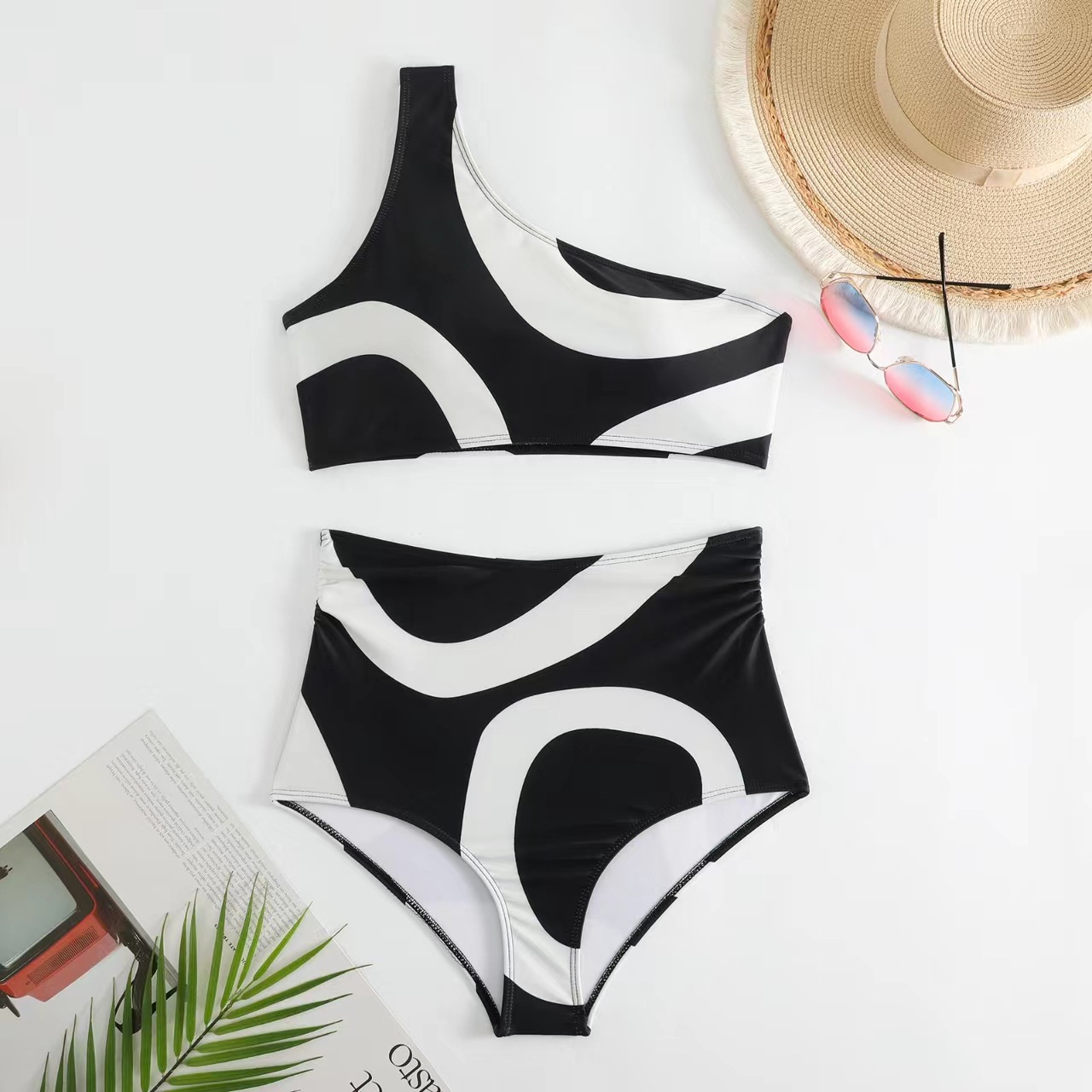 국경 간 새로운 복고풍 분할 수영복 유럽과 미국의 섹시한 원 숄더 수영복 쉬폰 비치 스커트 세트 도매스토어 가기