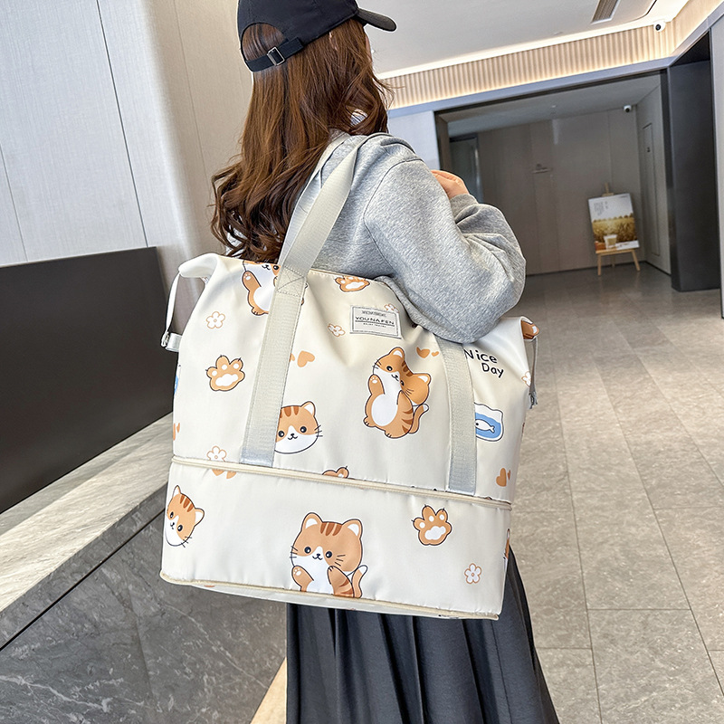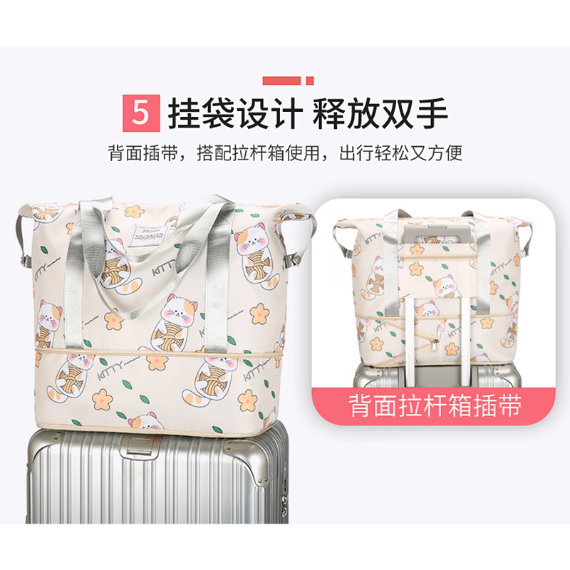 다채로운 여행 보관 가방 여성의 단거리 수하물 가방 더블 레이어 확장 대용량 여행 가방 출력 휴대용 보관 가방스토어 가기