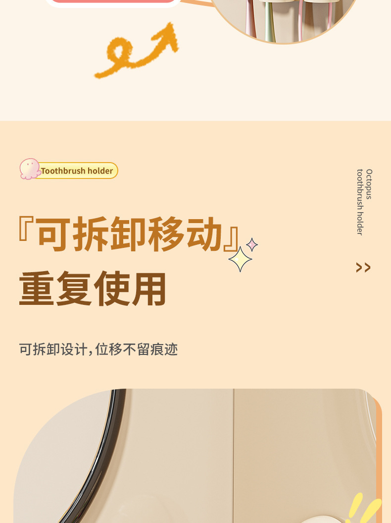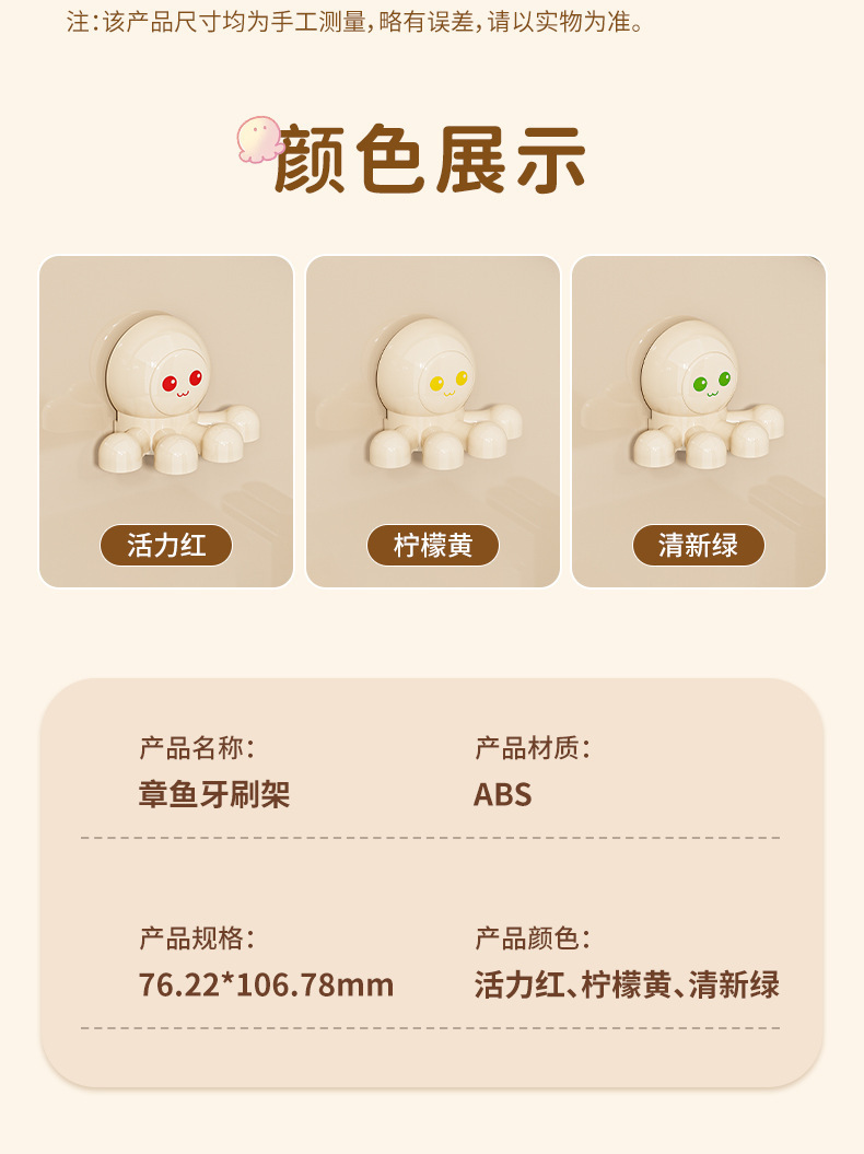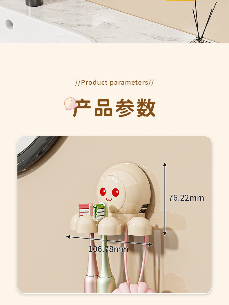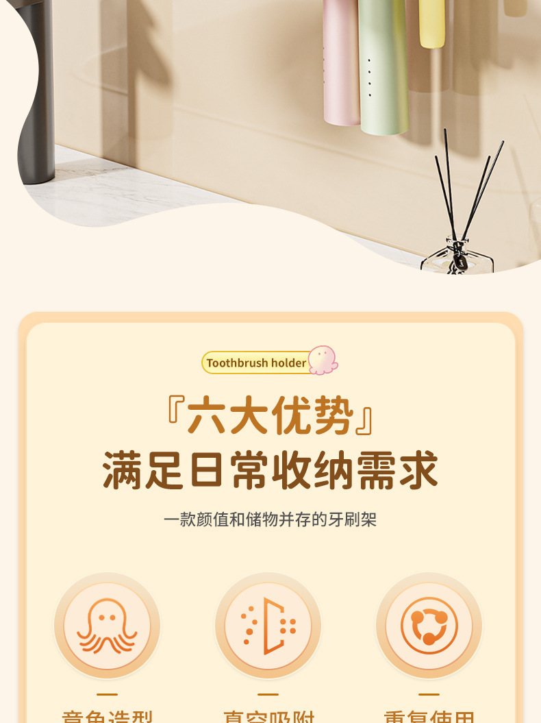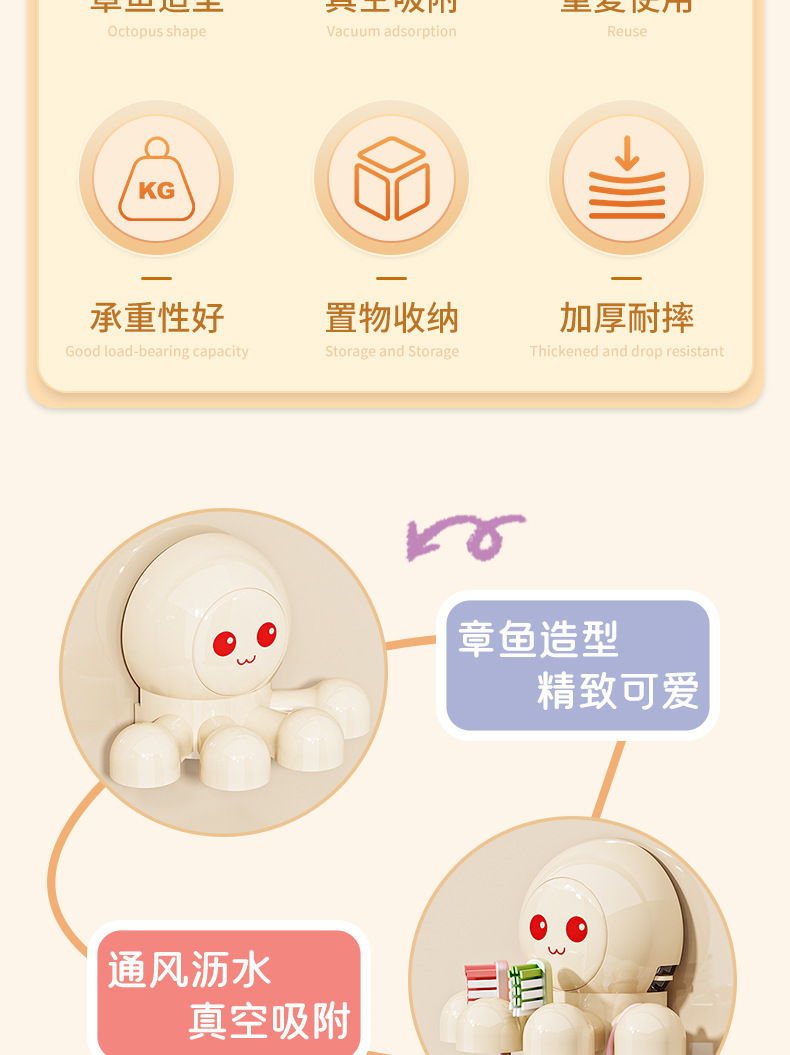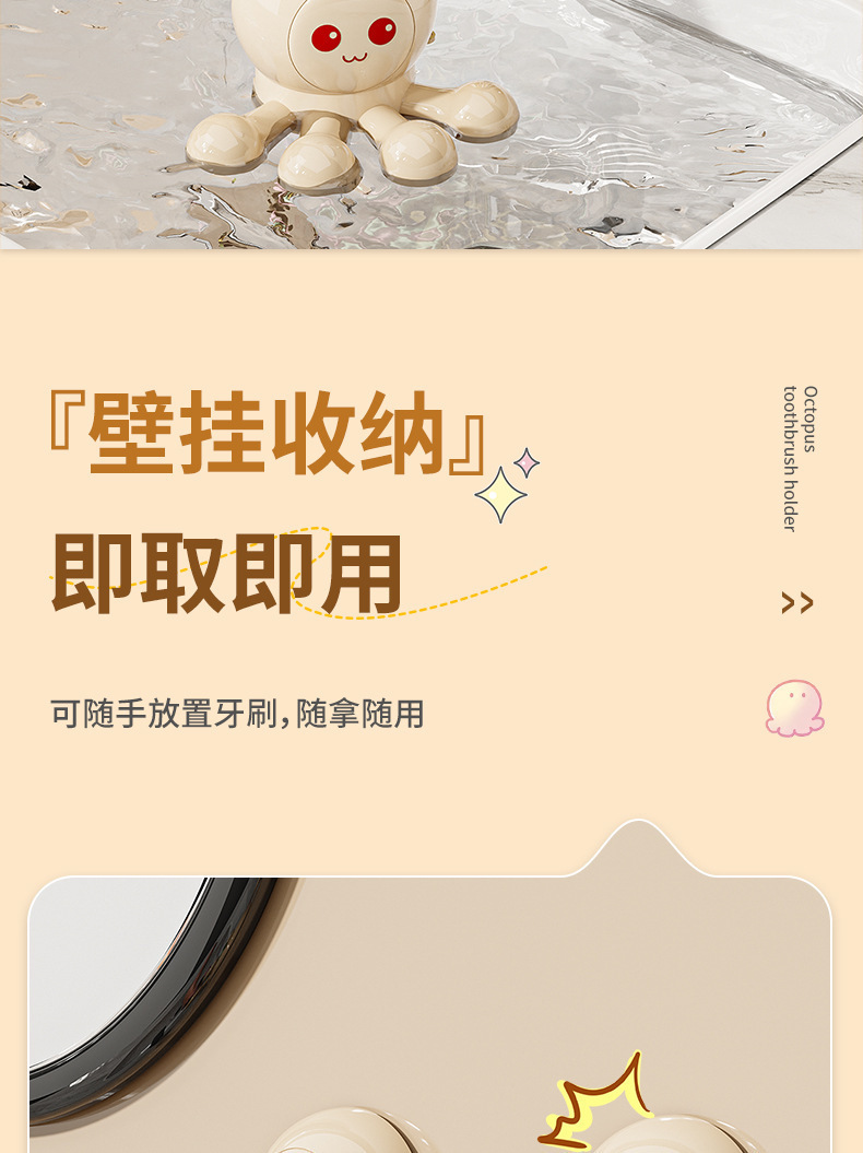 문어 흡입 컵 칫솔 랙 크림 바람 전기 칫솔 랙 벽 장착 화장실 펀치 프리 스토리지 랙