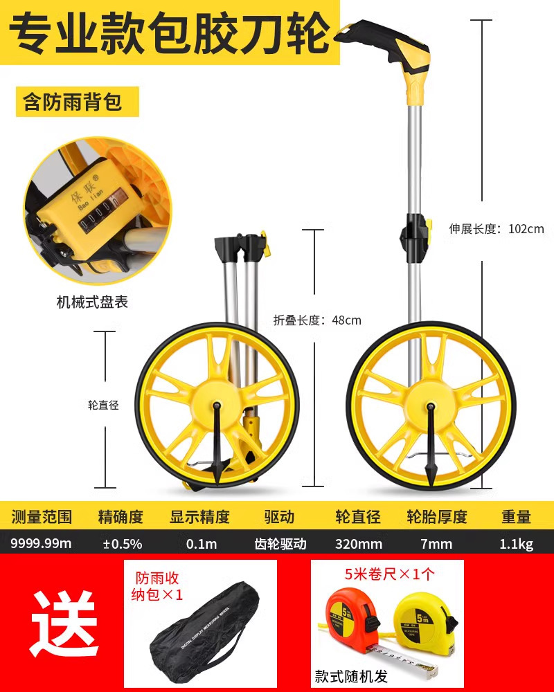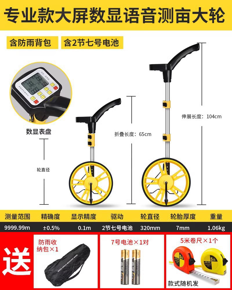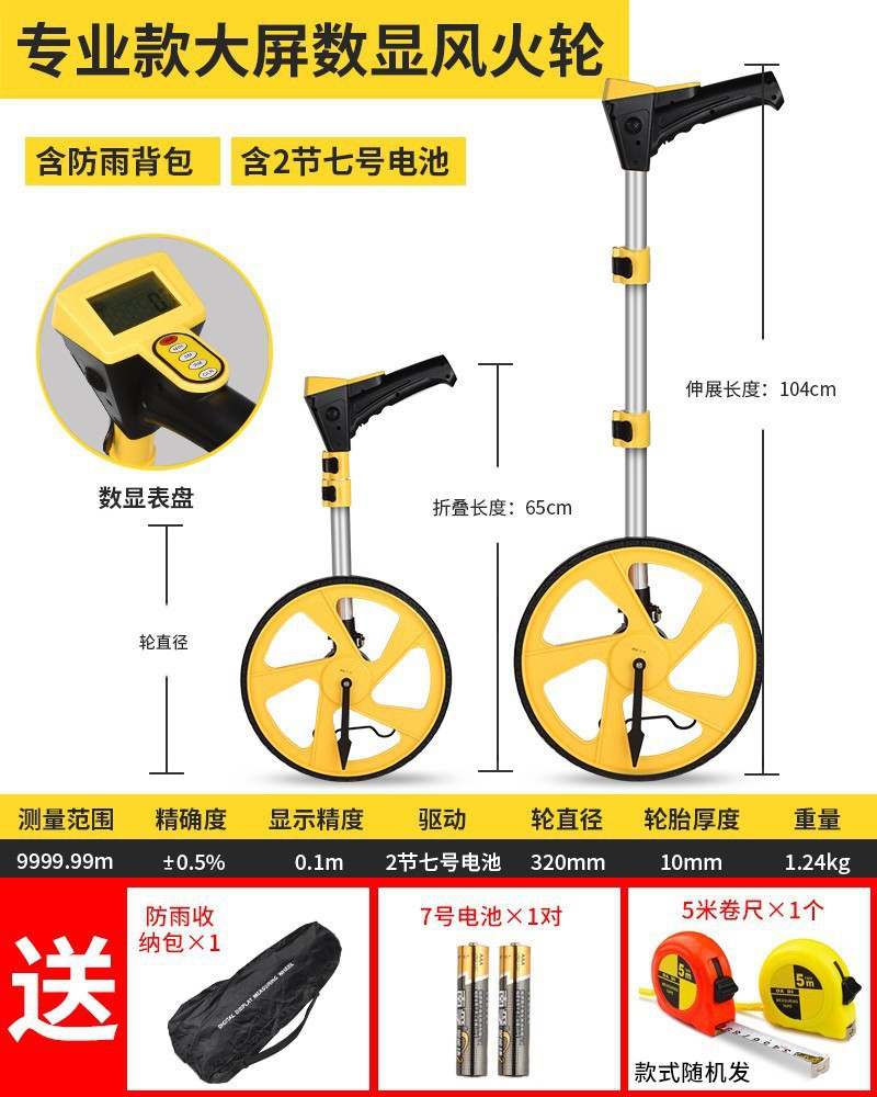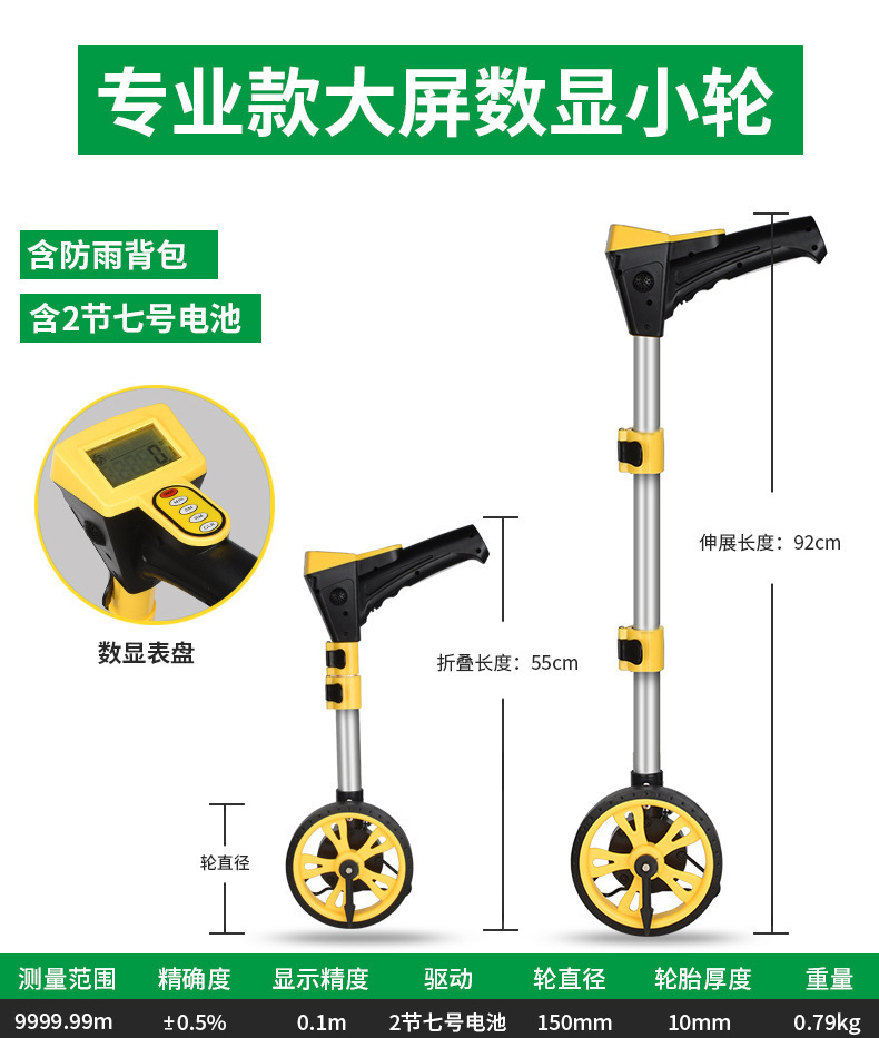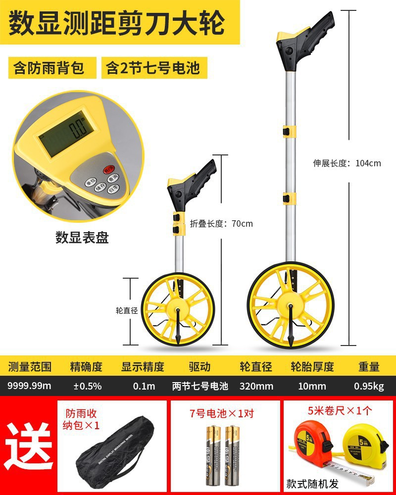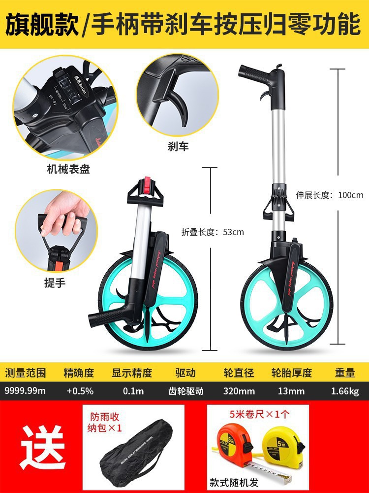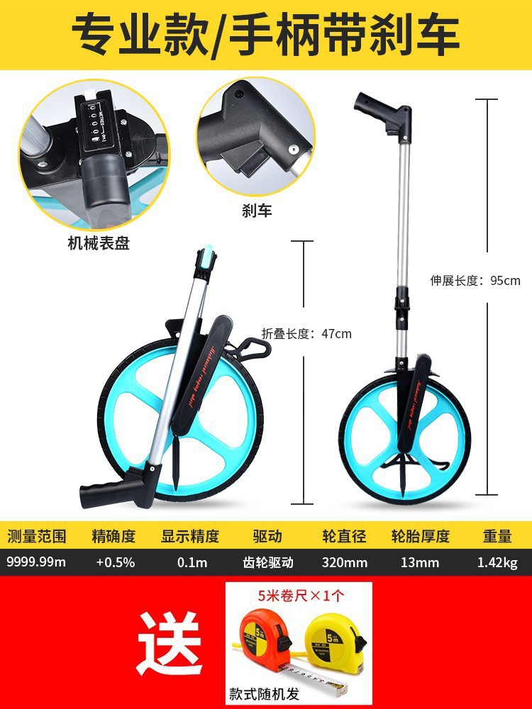 레인지 휠 핸드 푸시 롤러 타입 거리계 측정 차량 기계 디지털 디스플레이 야외 롤링 푸시 통치자 엔지니어링 측정 통치자스토어 가기
