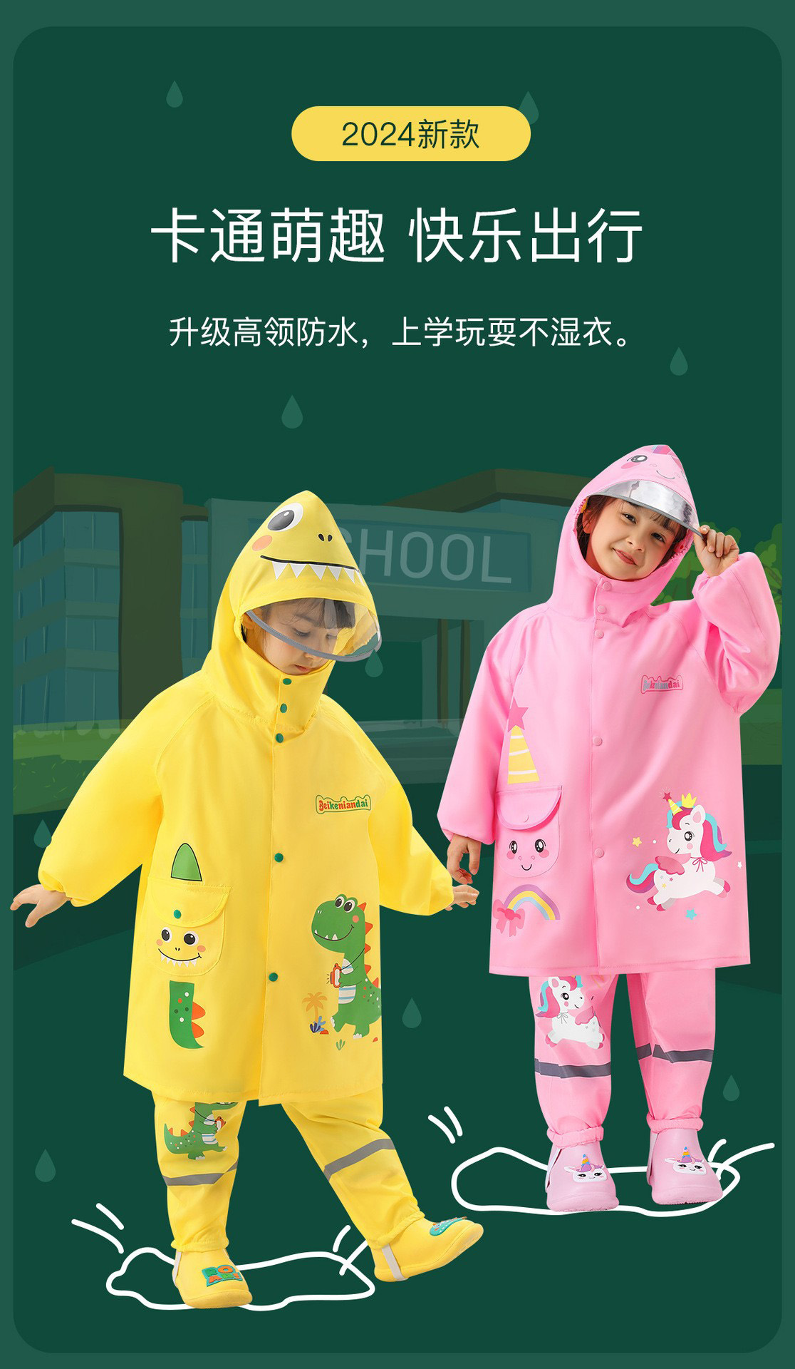 어린이 비옷 스쿨백 사이즈 유치원 어린이 세트 옥스포드 만화 공룡 폴리 에스테르 비옷스토어 가기